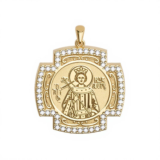 Custom Greek Orthodox Icon Pavé Round Frame Pendant