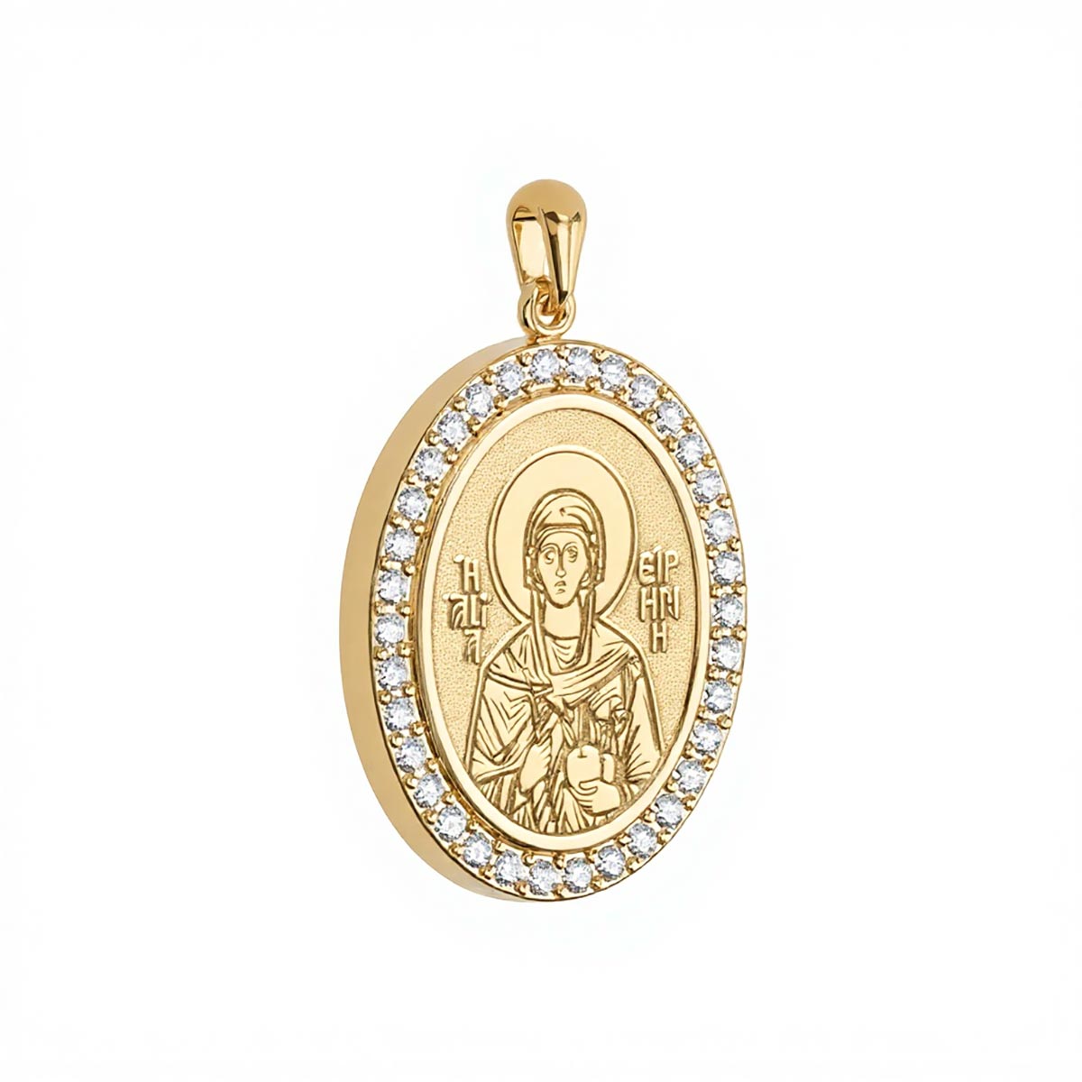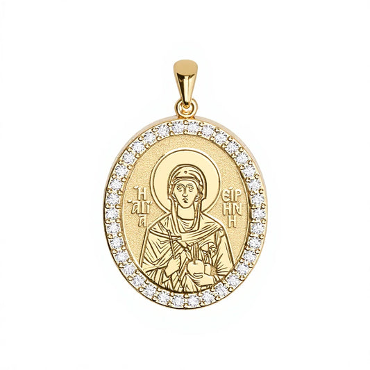 Custom Greek Orthodox Icon Pavé Oval Frame Pendant