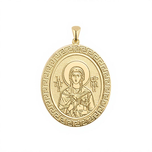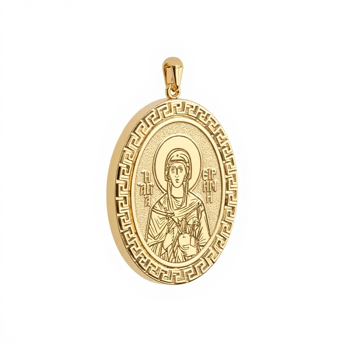 Custom Greek Orthodox Icon Greek Key Oval Frame Pendant
