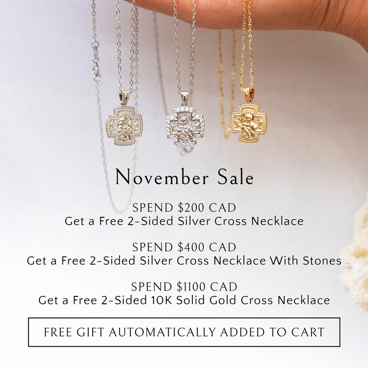 Virgin Mary & Jesus Two-Sided Sculpted Cross Necklace