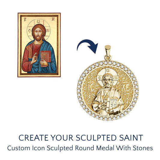 Create Your Sculpted Saint - Custom Icon Round Pavé Medal