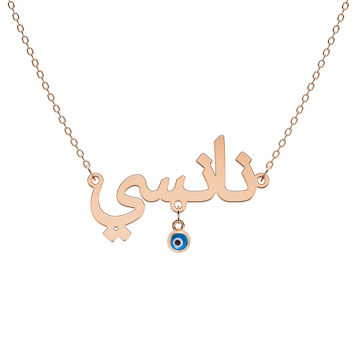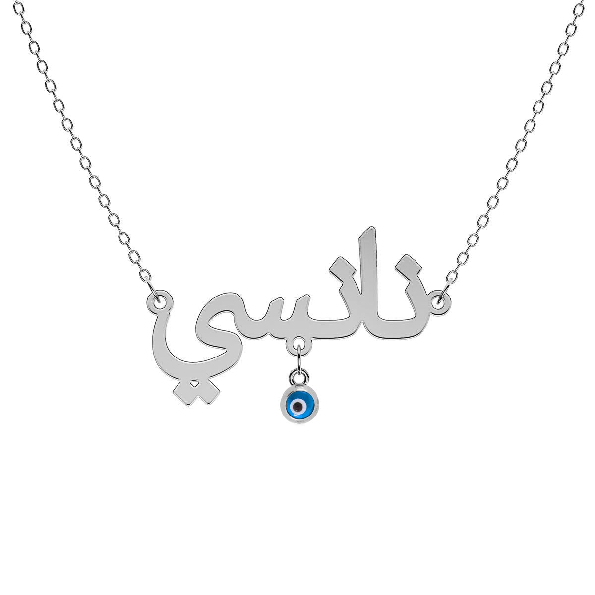 Arabic Personalized Name Necklace With Hanging Round Evil Eye Charm