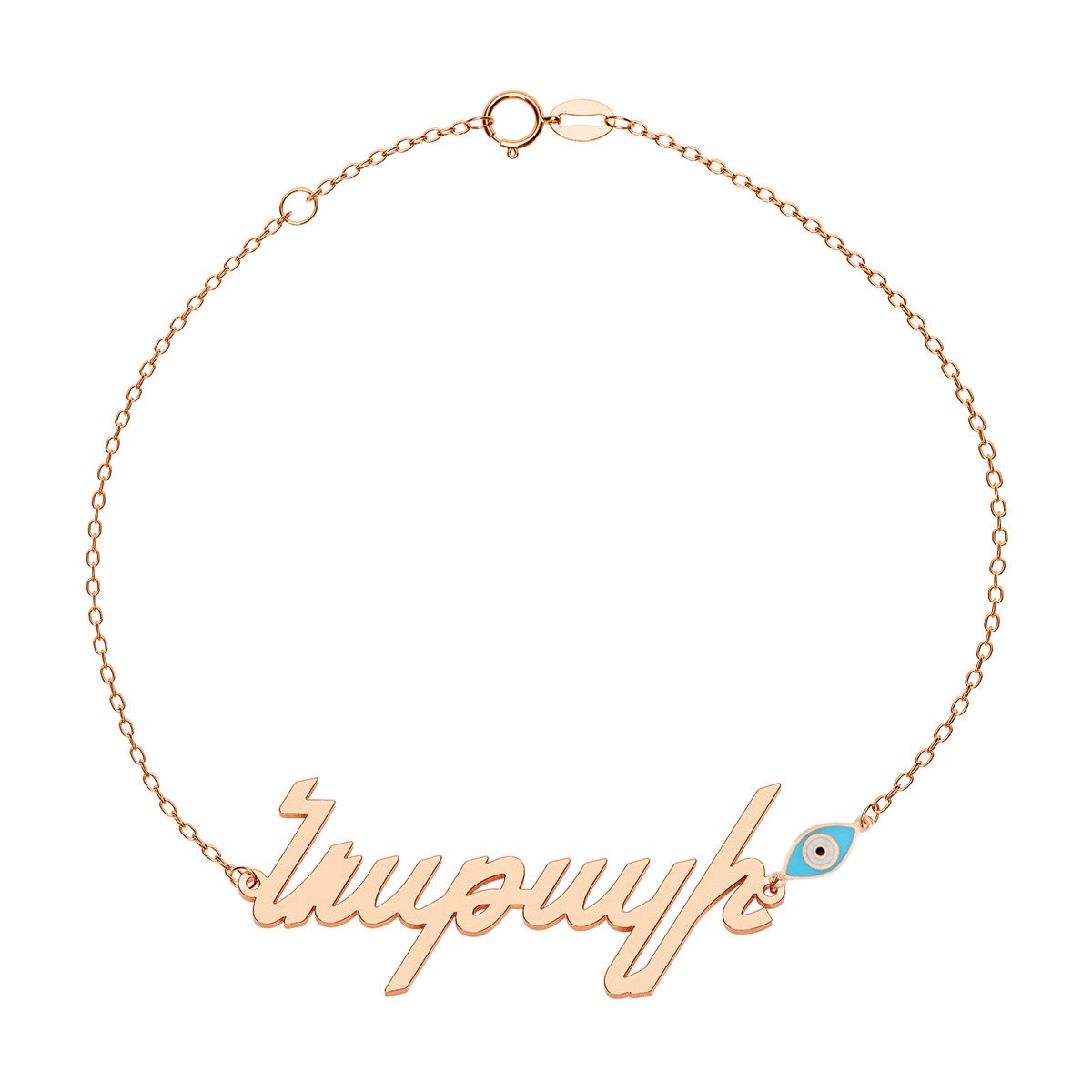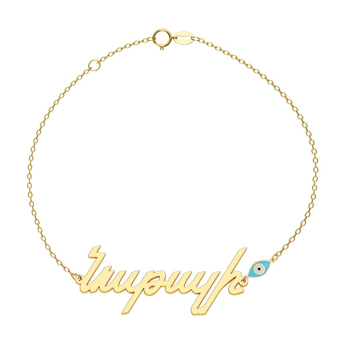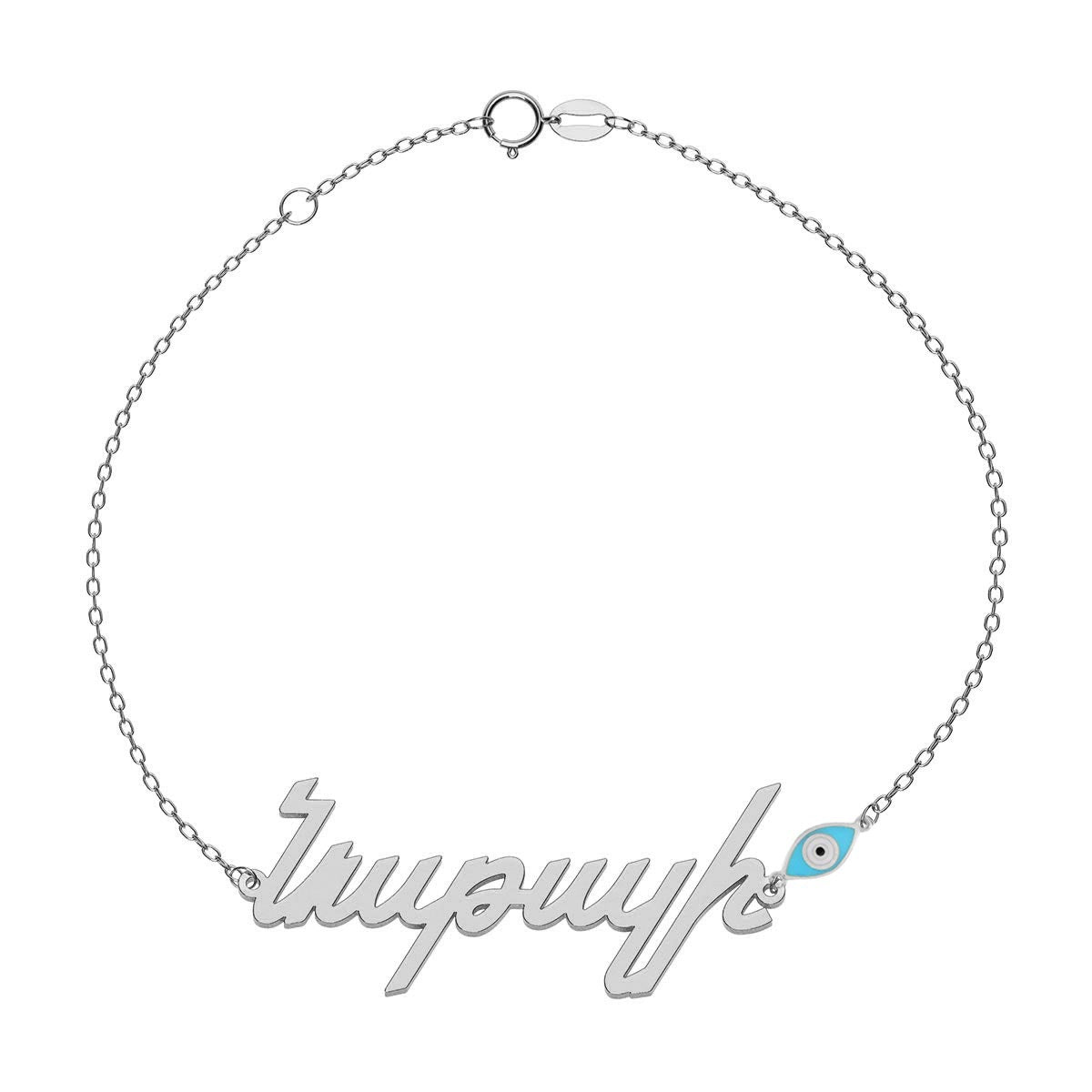 Armenian Personalized Name Bracelet With Turquoise Evil Eye Charm