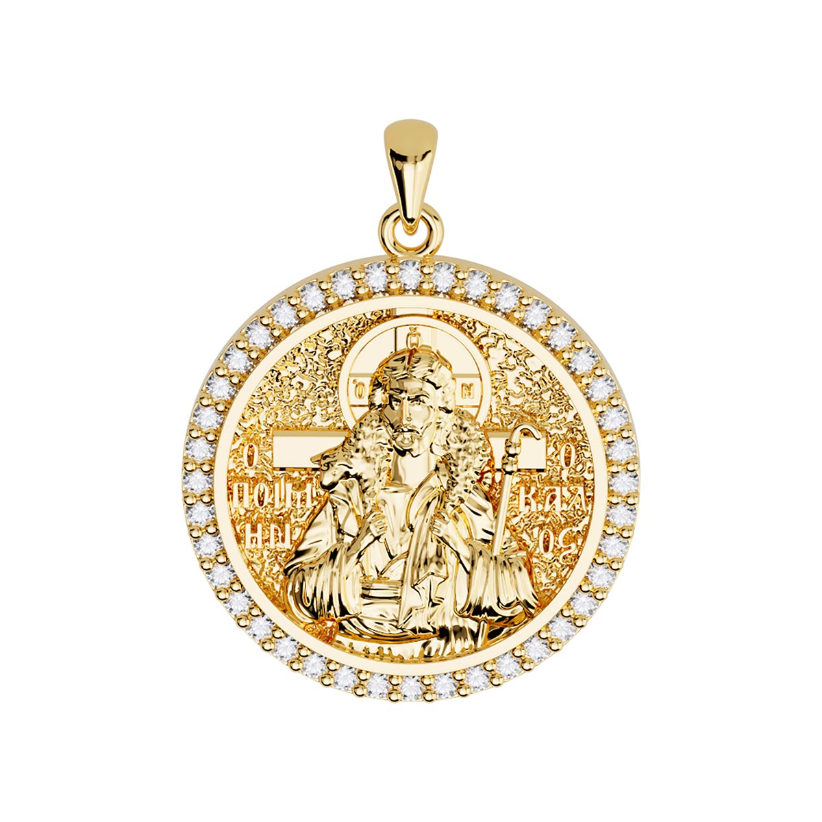Christ the Good Shepherd Orthodox Icon Sculpted Small Pavé Round Medal Small (16MM) Round