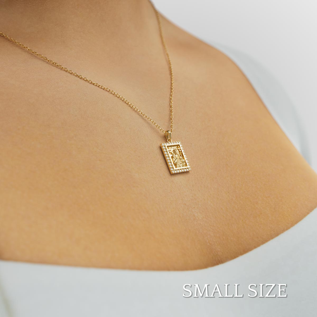 Embrace divine protection with this exquisitely sculpted Christ the Good Shepherd Orthodox icon medal. Crafted with meticulous detail, this small, pavé-embellished tag medal radiates a sense of reverence and enduring faith. A luxurious and meaningful piece, it serves as a constant reminder of Christ's loving guidance and watchful care. This beautifully designed icon medal makes a thoughtful gift for those seeking spiritual comfort and elegant adornment.
