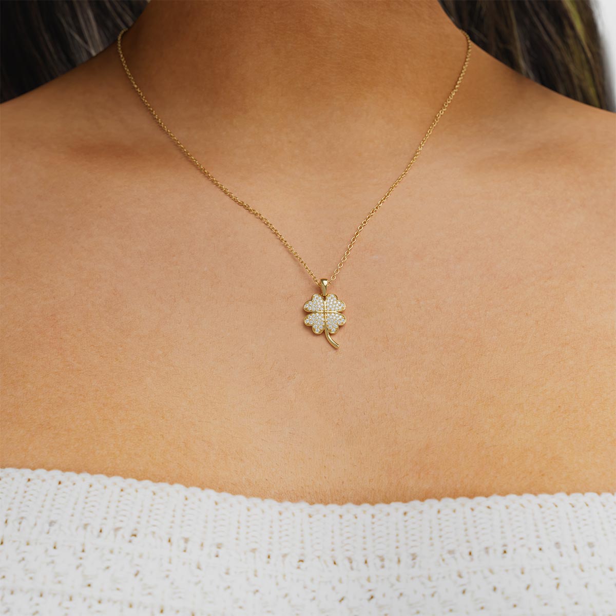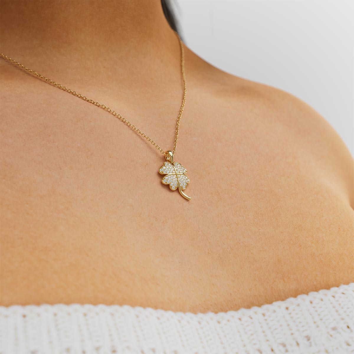 Add a touch of elegance to your look with our stunning Clover Pavé Necklace. This delicate piece features a beautiful four-leaf clover design encrusted with shimmering pavé stones. Available in solid gold or sterling silver, this necklace is perfect for any occasion. Whether you wear it alone or layer it with other necklaces, this piece is sure to make a statement.