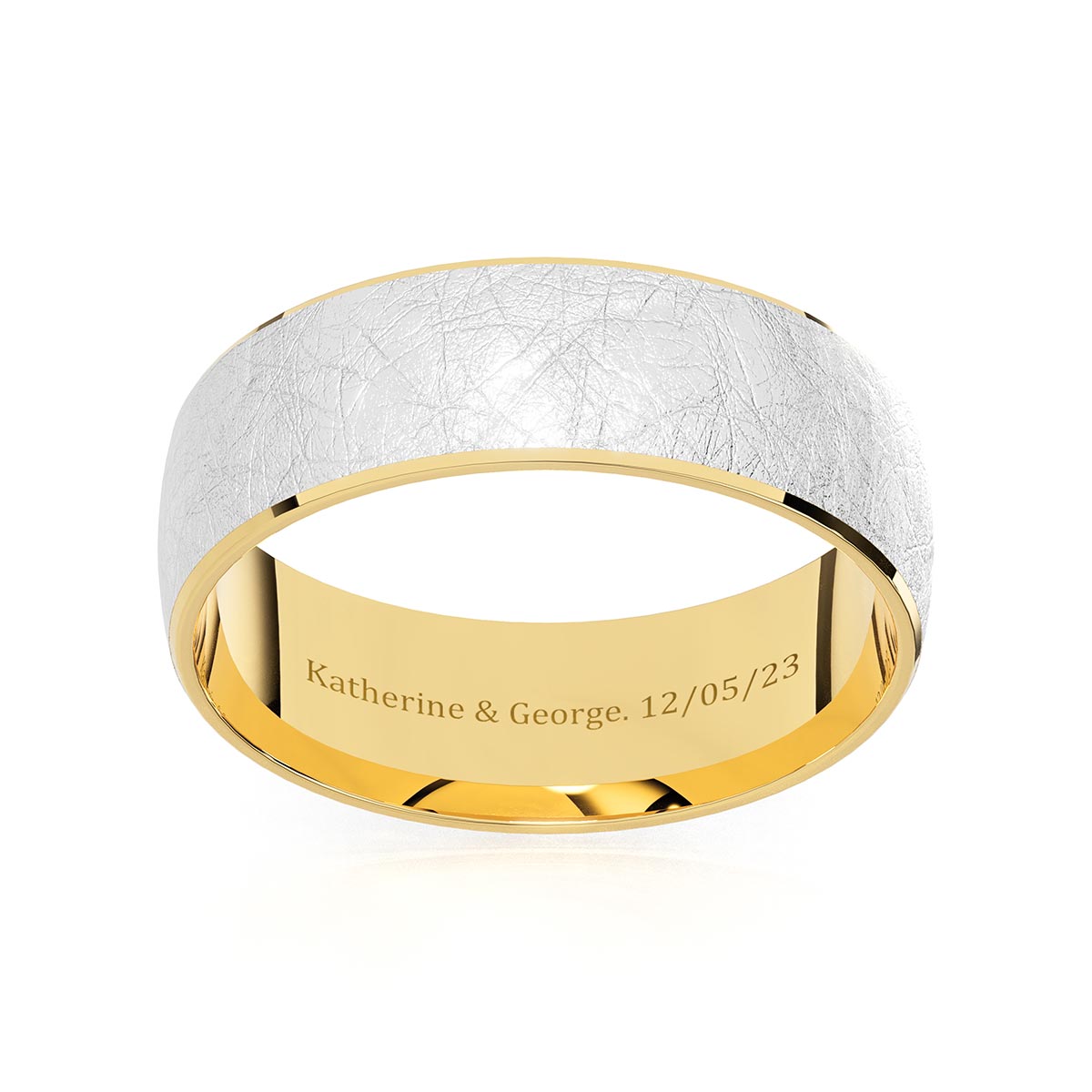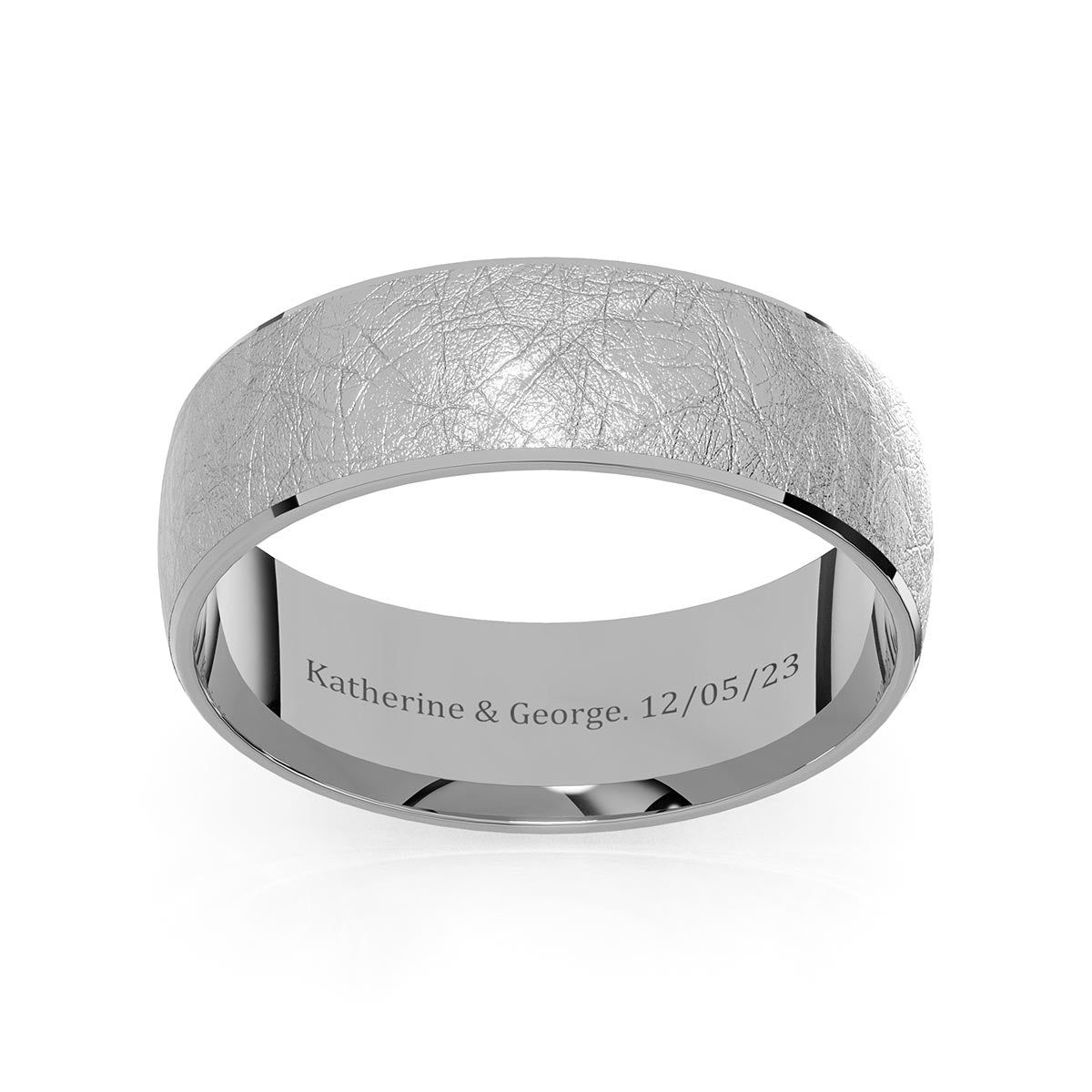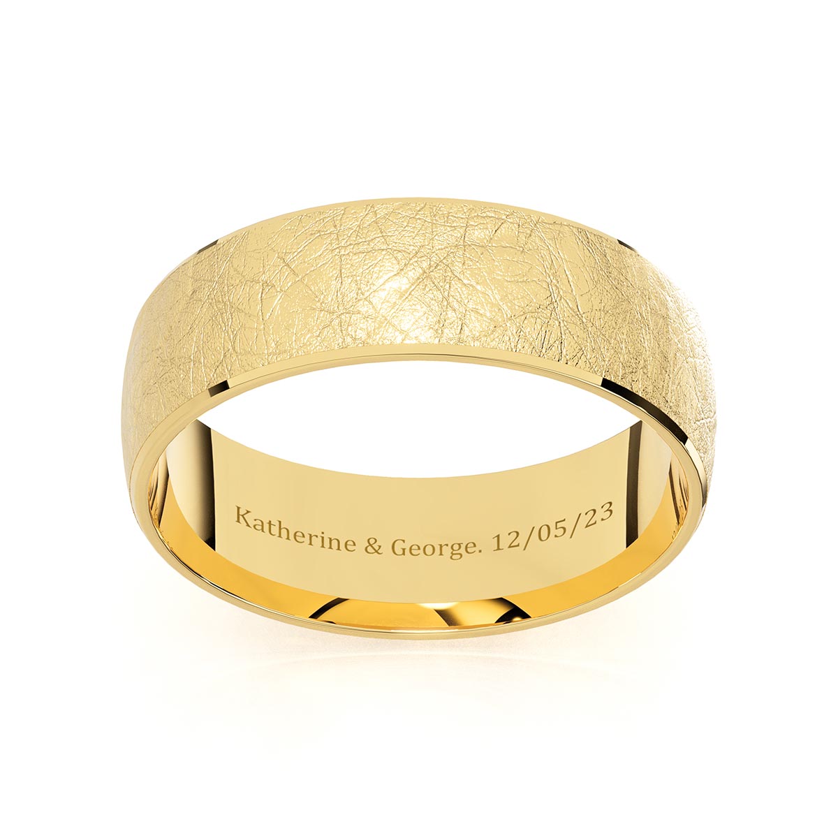 Introducing our Comfort Fit 7mm Wedding Ring with Wide Scratched Inlay, a testament to timeless elegance and modern sophistication. Carefully crafted for comfort, this Wedding Ring boasts a 7mm width that strikes the ideal balance between tradition and contemporary allure. The wide scratched inlay adds a distinctive touch to the detailing, creating a unique symbol of commitment. Select your preferred choice of solid gold to personalize this band, expressing your individual style with refinement. Further enhance the significance of your union by choosing a meaningful engraving inside, transforming this Wedding Ring into a cherished keepsake that encapsulates the beauty of enduring love.