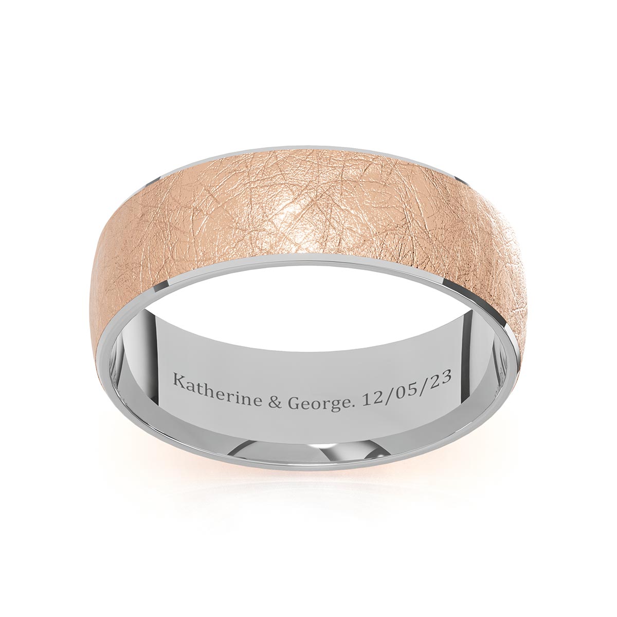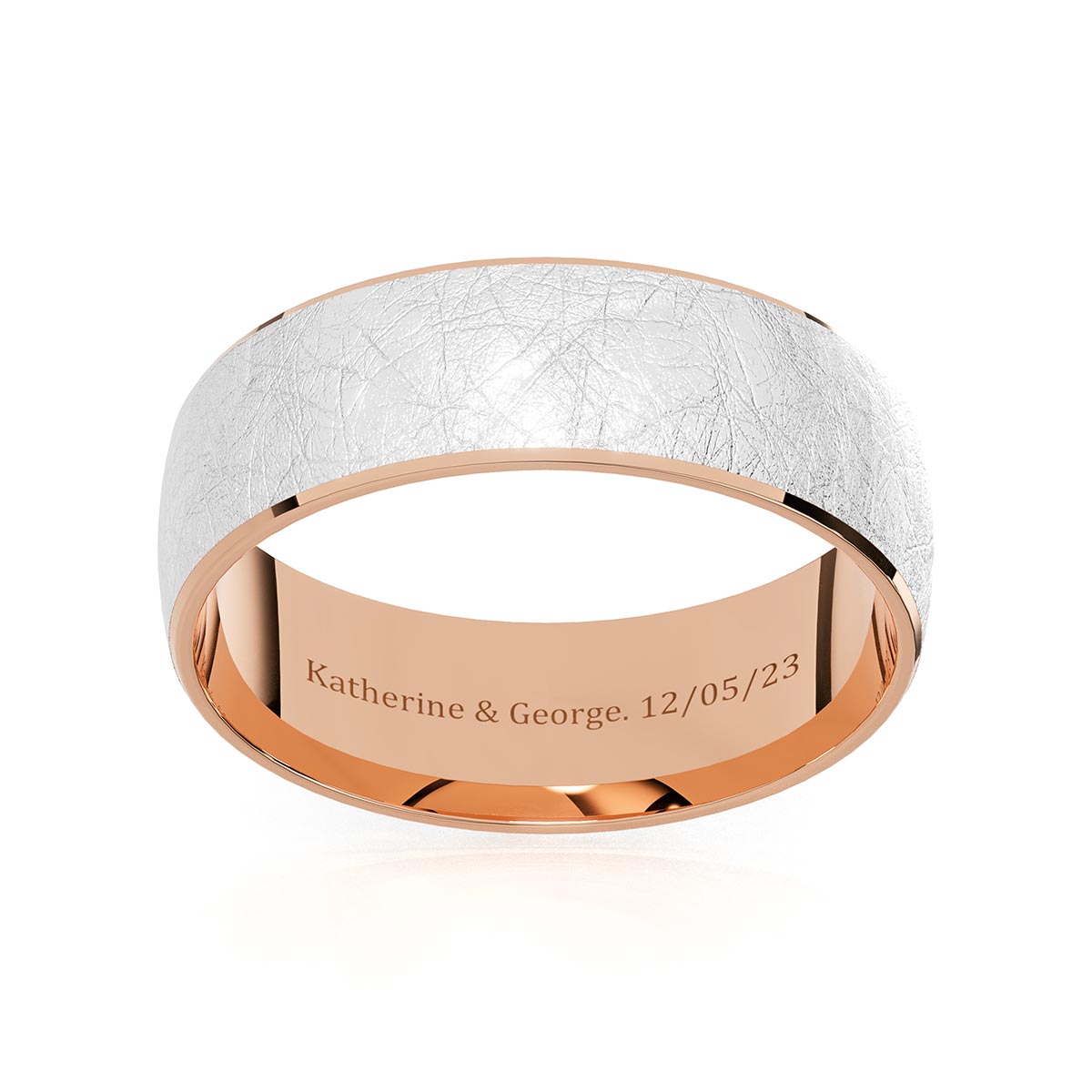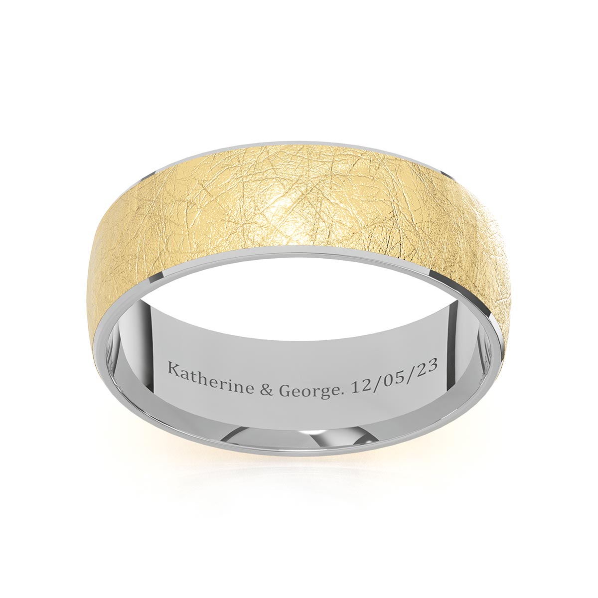 Introducing our Comfort Fit 7mm Wedding Ring with Wide Scratched Inlay, a testament to timeless elegance and modern sophistication. Carefully crafted for comfort, this Wedding Ring boasts a 7mm width that strikes the ideal balance between tradition and contemporary allure. The wide scratched inlay adds a distinctive touch to the detailing, creating a unique symbol of commitment. Select your preferred choice of solid gold to personalize this band, expressing your individual style with refinement. Further enhance the significance of your union by choosing a meaningful engraving inside, transforming this Wedding Ring into a cherished keepsake that encapsulates the beauty of enduring love.