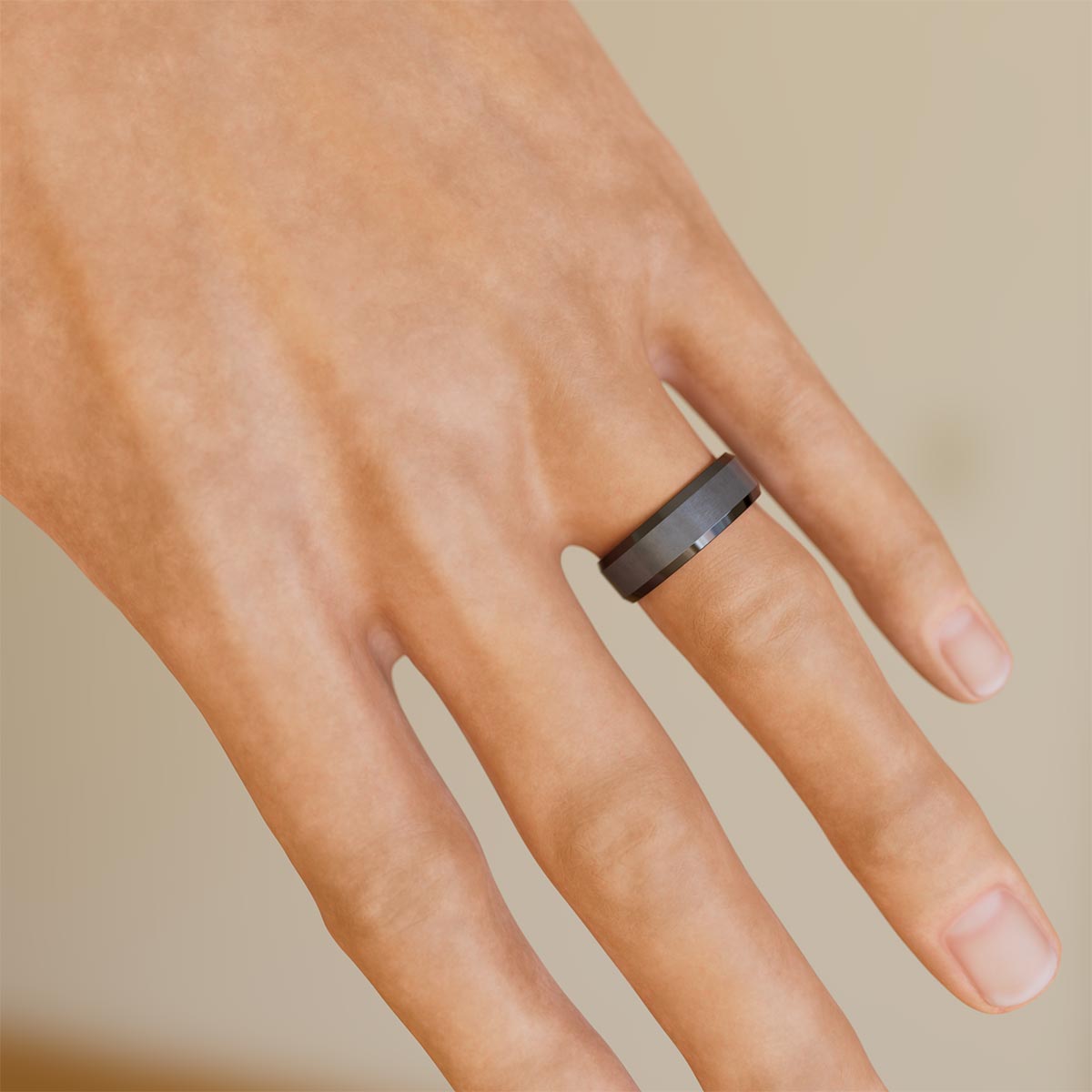 Comfort Fit 7MM Tantalum Beveled Men's Wedding Ring with Wide Satin Inlay