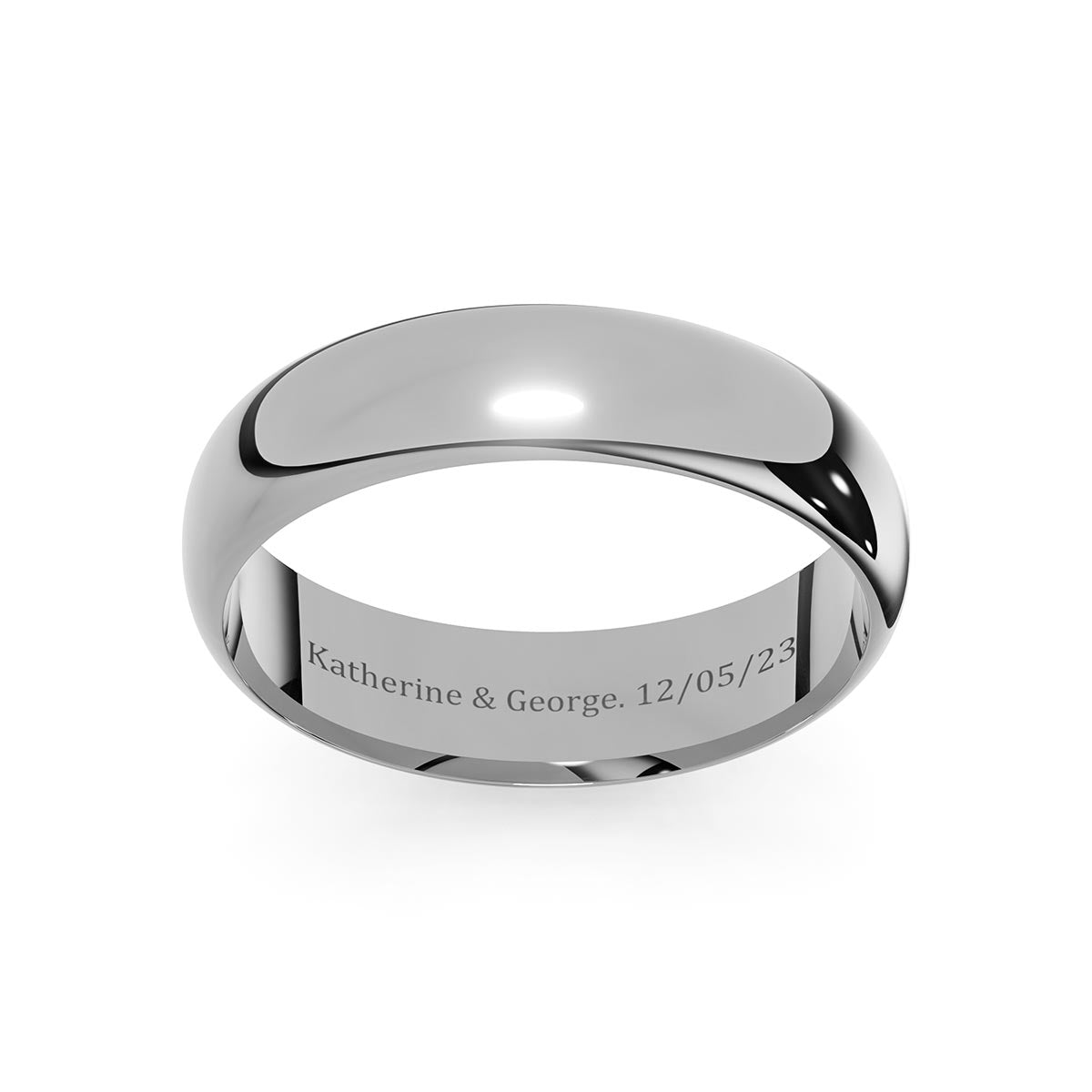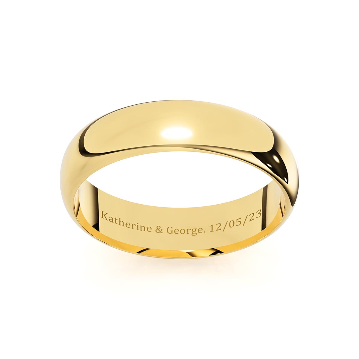 Introducing our Dome Comfort Fit 5mm Classic Wedding Band, a timeless symbol of love and commitment. Crafted with utmost care, this band offers a luxurious comfort fit, ensuring a comfortable feel on your finger. Its curved domed profile adds an elegant touch, while the choice between solid gold or platinum allows you to express your unique style. To make it even more special, personalize your band with a heartfelt engraving inside! With its exceptional craftsmanship and personalization options, this wedding band is the perfect embodiment of enduring love and cherished memories.