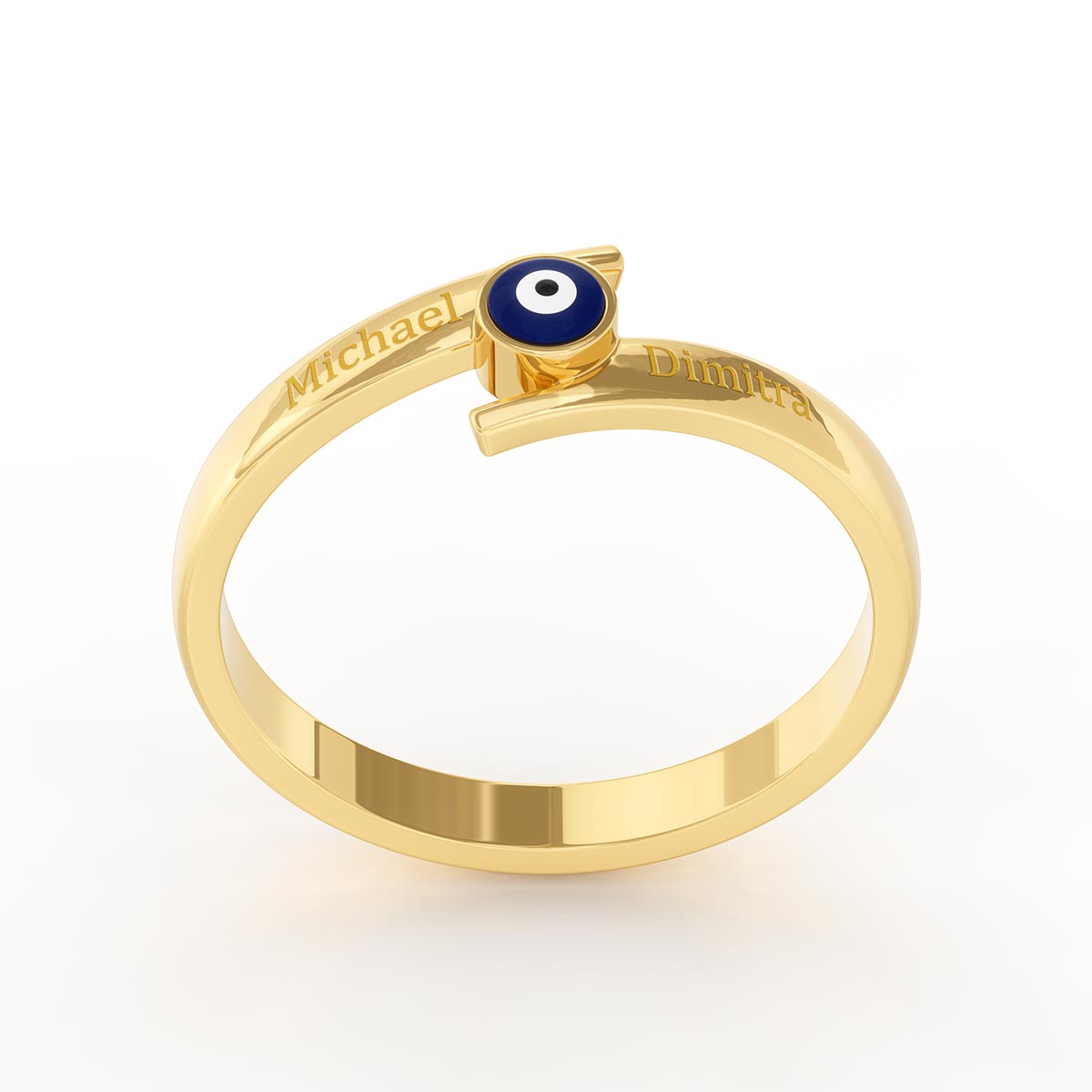 Embrace the mystical allure of the Evil Eye Bypass Ring, a chic piece that offers both style and spiritual protection. Available in your choice of sterling silver or solid gold, it comes with the option for personalized engravings, adding a layer of individuality. This ring is designed to be a contemporary protector, warding off negativity while celebrating your unique narrative.