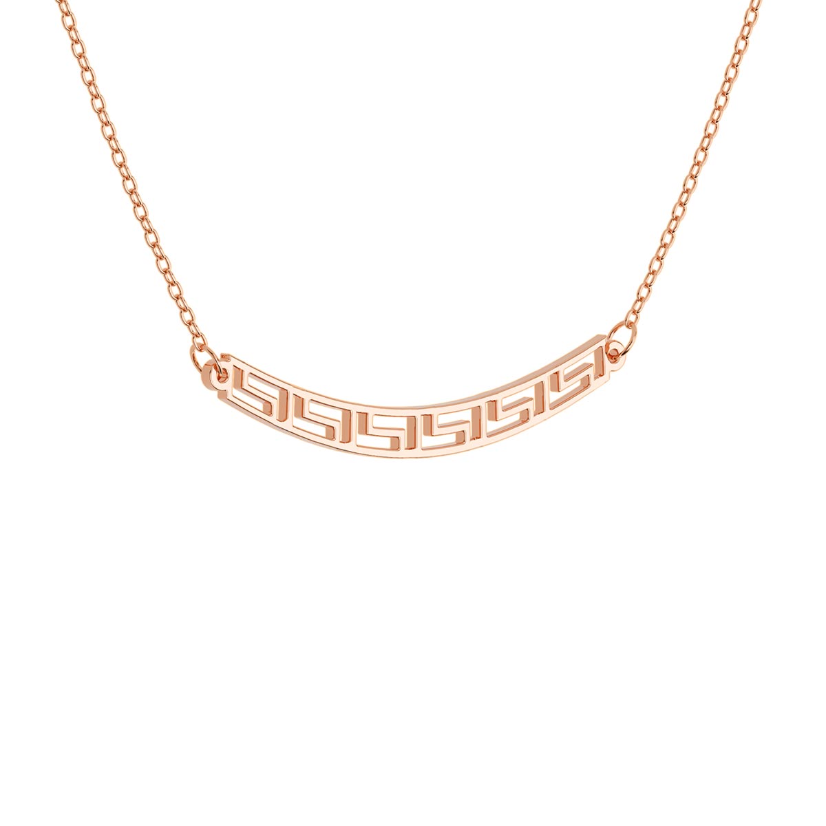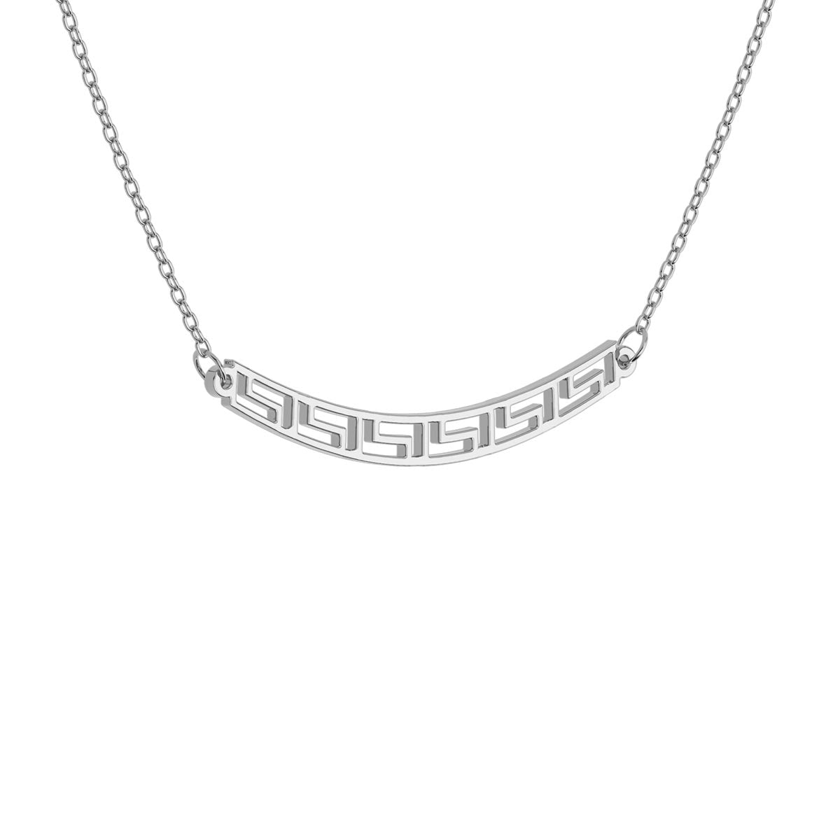 Simple yet elegant, this bar necklace features a deeply engraved Greek key design, offering a touch of timeless sophistication. Available in your choice of solid gold or sterling silver, it’s a versatile piece that enhances any outfit.