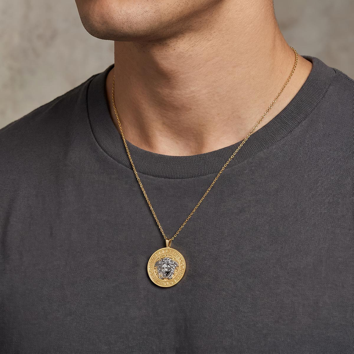Greek Key Medusa Disc Necklace