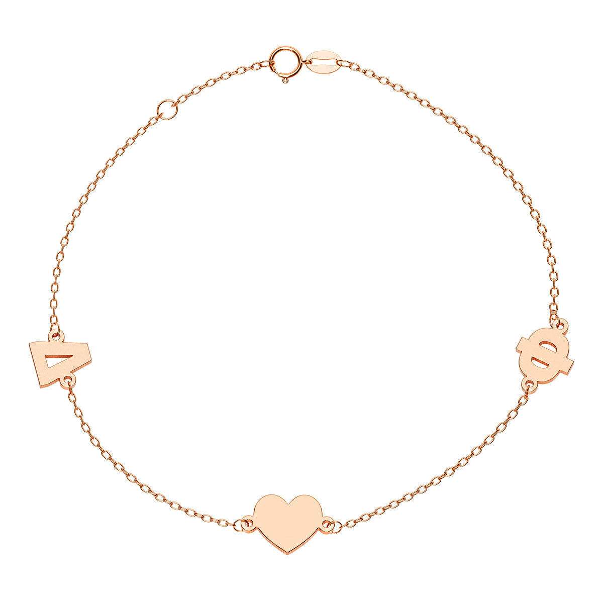 Greek Personalized 2 Initial Bracelet With Heart Charm