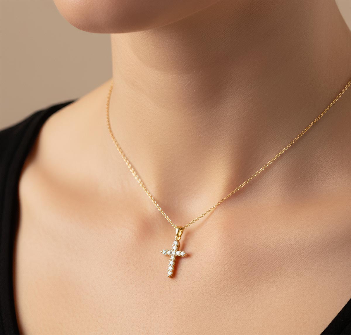 Our Mini Size Pavé Cross With 2mm Stones is a stunning piece of jewelry that combines elegance with simplicity. The mini cross is encrusted with larger pavé stones that catch the light beautifully. Available in solid gold or sterling silver, this necklace is perfect for dressing up or keeping it casual. Wear it on its own or layer it with other necklaces for a more personalized look.