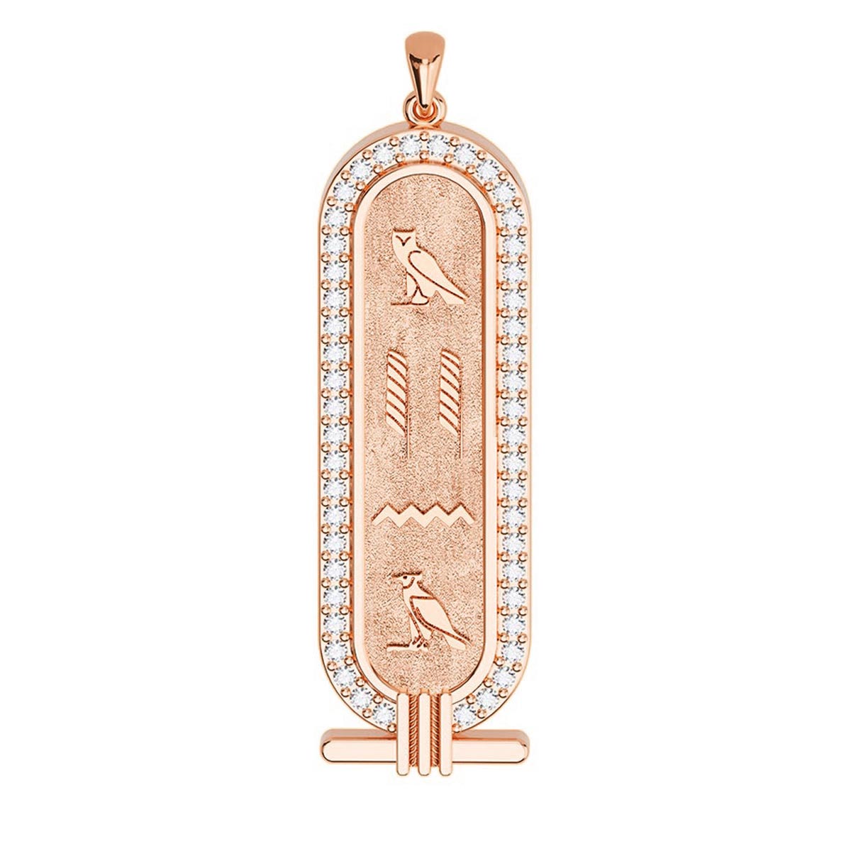 Personalized Cartouche Egyptian Hieroglyph Name Pavé Frame Necklace
