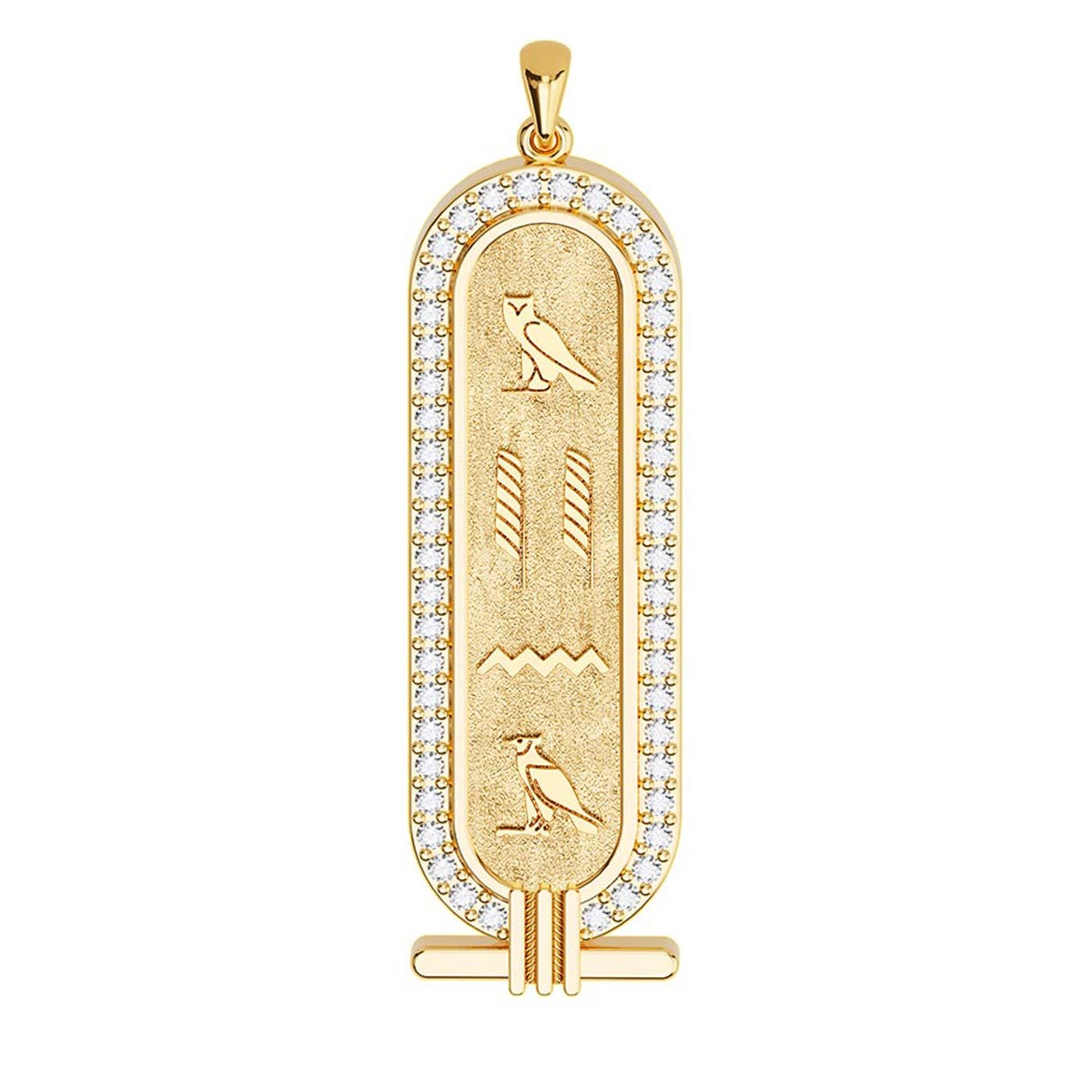 Carve your name into history with our Personalized Cartouche Egyptian Hieroglyph Name Pavé Frame Necklace. This bespoke treasure, available in solid gold or sterling silver, is encrusted with pavé stones and personalized with your name in ancient hieroglyphs, connecting you to the mystique of the pharaohs.