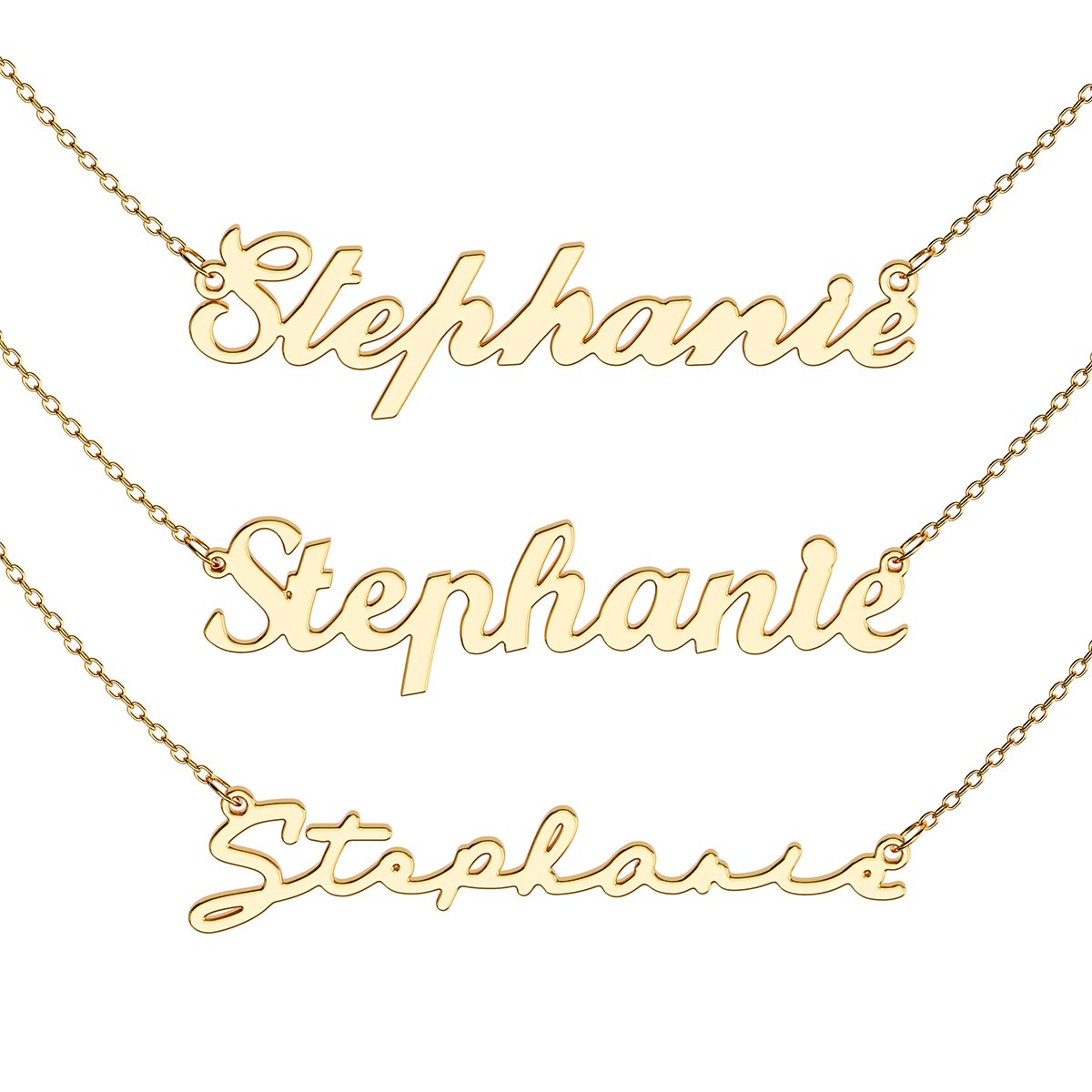 Create a necklace that's all your own with the personalized name necklace. First, choose from 7 font options, then choose whether you want your necklace in silver or solid gold. Lastly, add an optional charm to the chain for an extra special touch. The result is a name necklace that's as unique as you are!