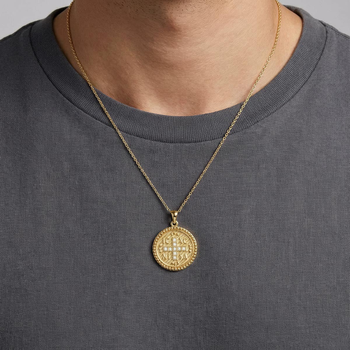 Round Byzantine Style Konstantinato Pendant With Pavé Cross