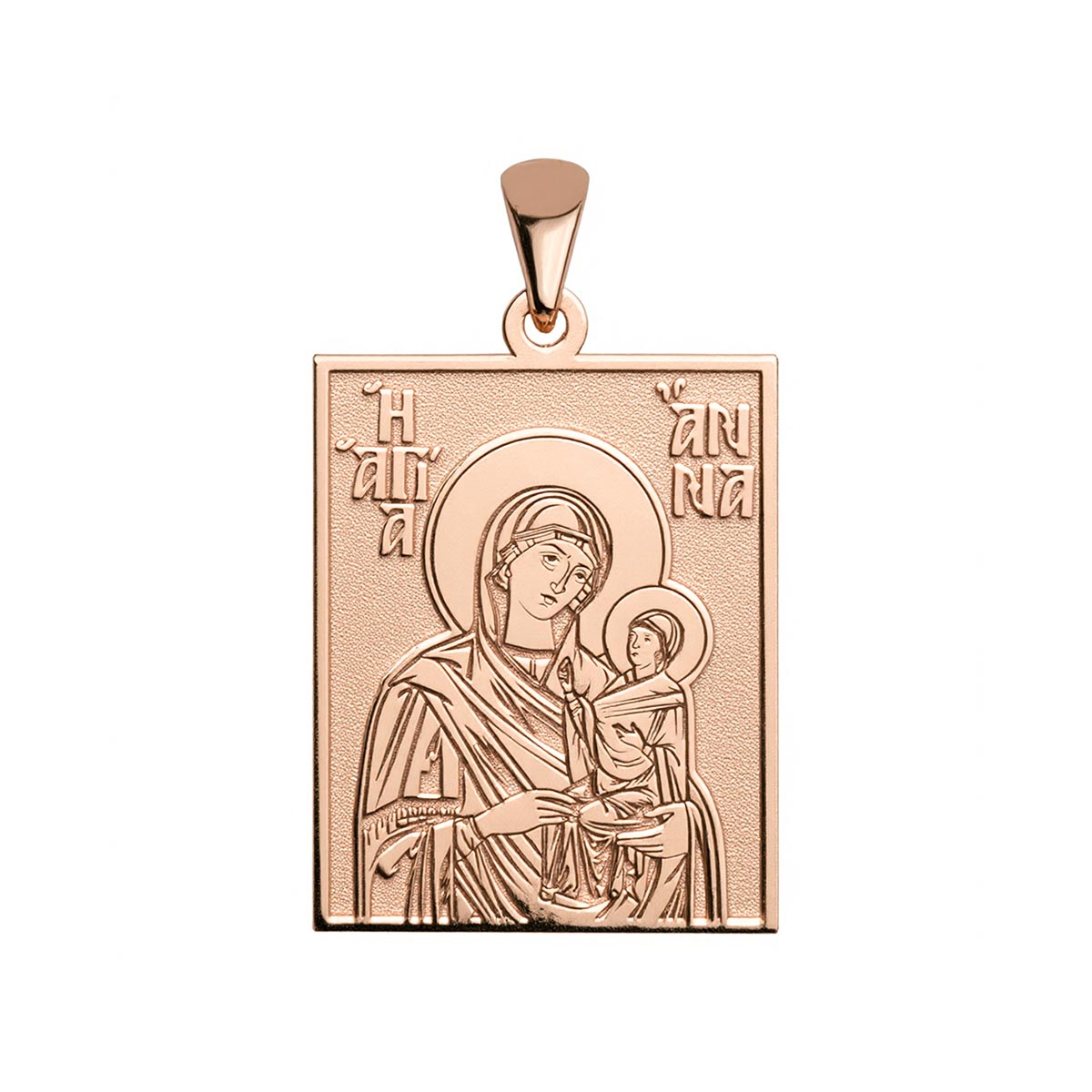 This highly detailed, historically accurate representation of the Greek Orthodox icon of Saint Anna (Anne) Mother of Virgin Mary is engraved into a rectangular tag medal in the metal of your choice. Available with or without a chain, this piece makes for the perfect gift for yourself, or for a special someone’s name day! Saint Anna was the mother of the Virgin Mary and the wife of Saint Joachim. According to Christian tradition, she was barren until an angel appeared to her and promised her a child. She is venerated as a saint in the Eastern Orthodox Church and the Roman Catholic Church and is considered the patron saint of women in labor.