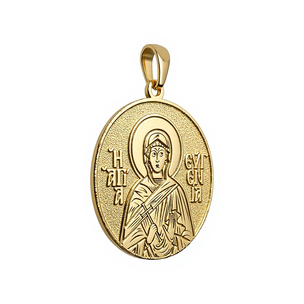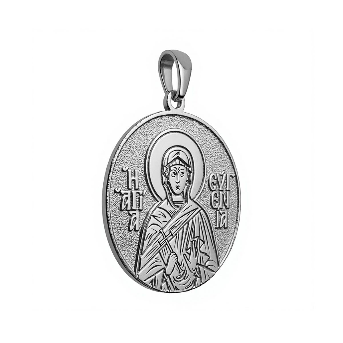 This highly detailed, historically accurate representation of the Greek Orthodox icon of Saint Eugenia of Rome is engraved into a round medal in the metal of your choice. Available with or without a chain, this piece makes for the perfect gift for yourself, or for a special someone’s name day! Saint Eugenia was a 3rd-century Christian martyr from Rome. Disguised as a man, she joined a monastery and rose to become the abbot. Eventually, her true gender was discovered, and she was martyred for her faith.