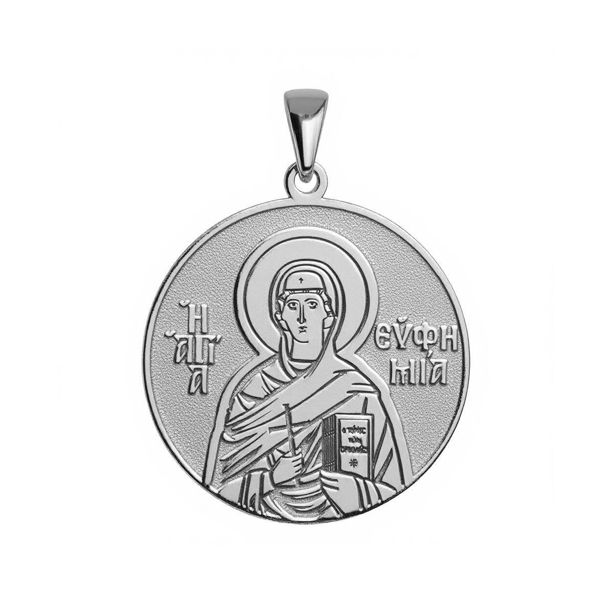 Experience divine protection with our exquisite round medal featuring Saint Euphemia the Great Martyr. This meticulously crafted Greek Orthodox icon showcases her radiant image, capturing the beauty and devotion of traditional artistry. A symbol of unwavering faith and courage, this medal serves as a powerful reminder of her intercessions. Perfect for personal devotion or as a meaningful gift, embrace the spiritual elegance of this sacred heirloom. Own a piece of Orthodox heritage, imbued with blessings and timeless grace.