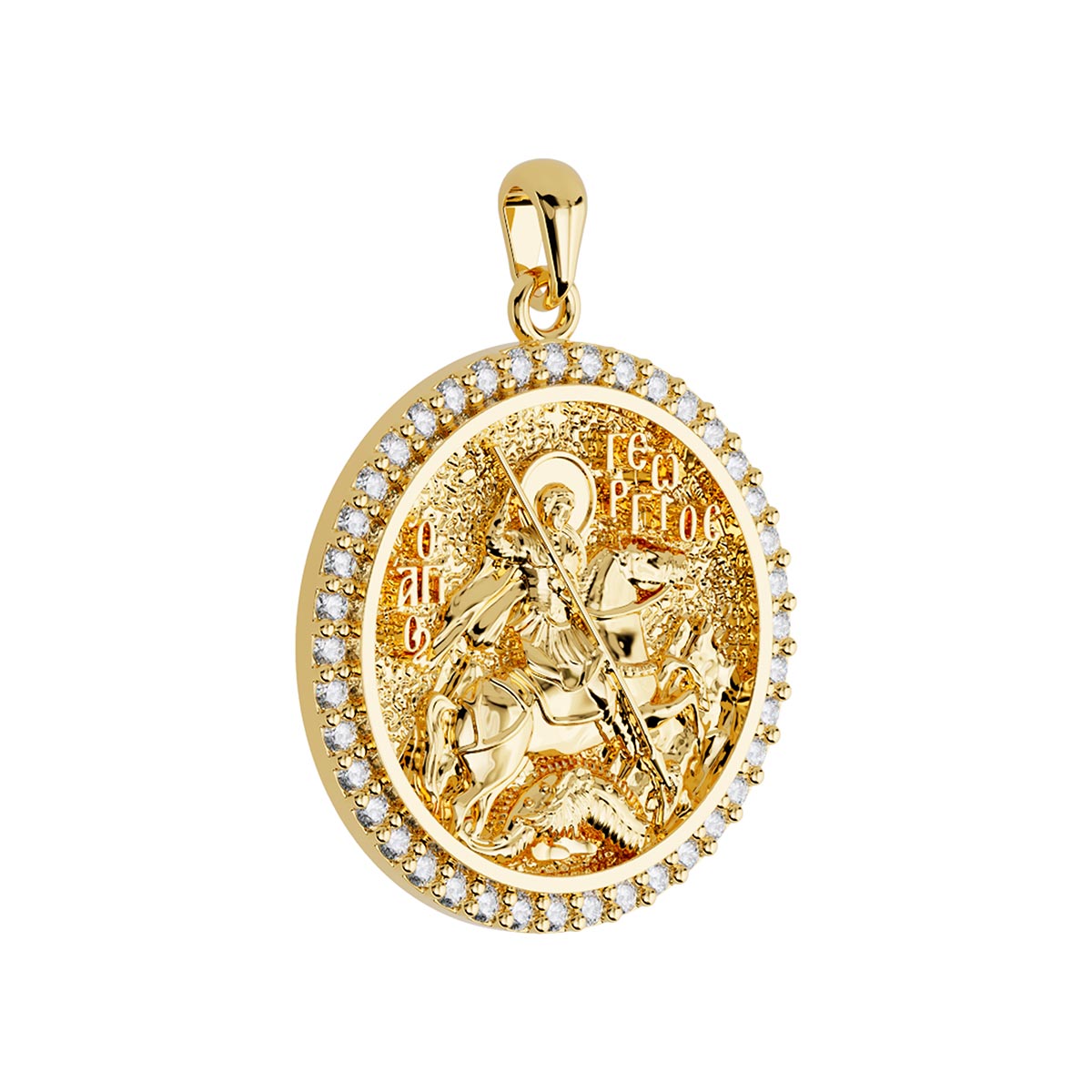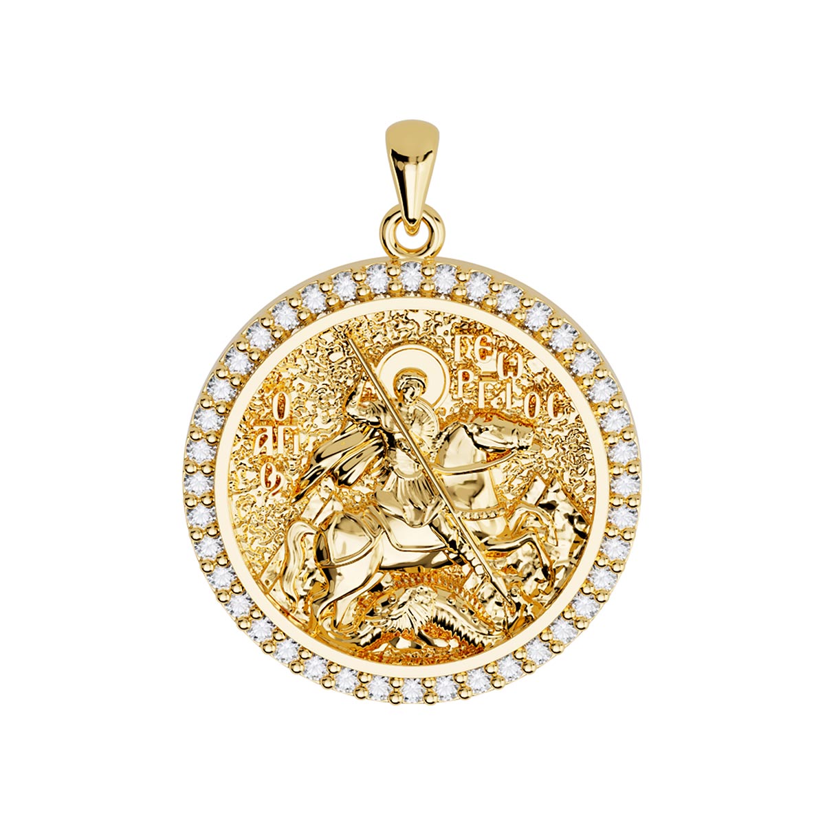 Saint George (Georgios) And the Dragon Orthodox Icon Sculpted Medium Pavé Round Medal Medium (20MM) Round