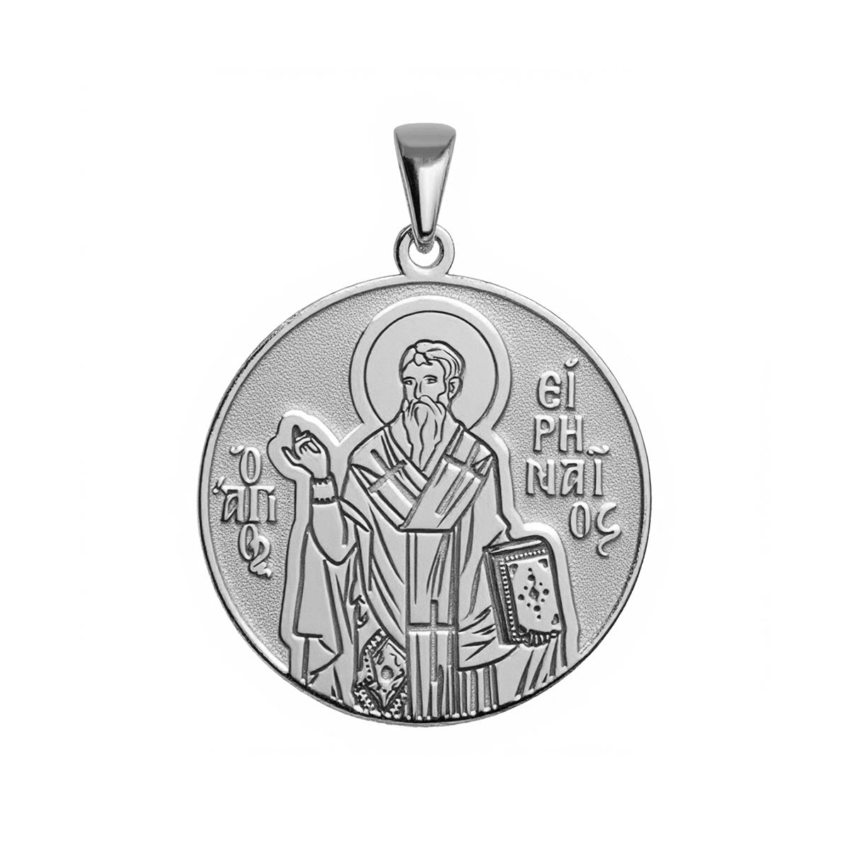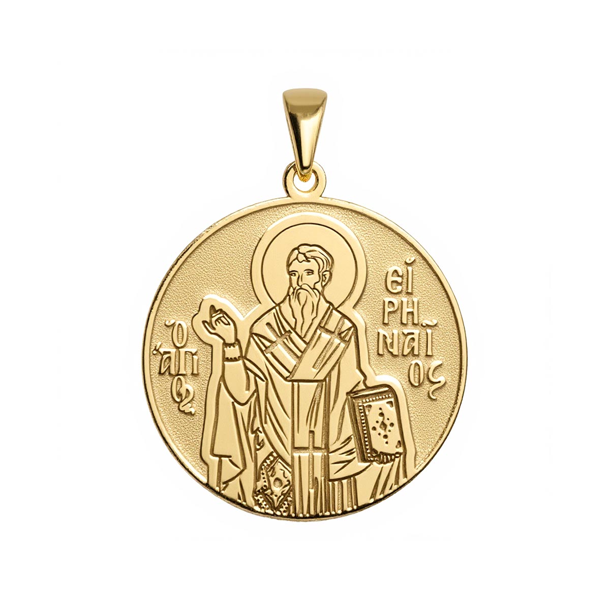 Embrace divine protection with this exquisite round medal featuring Saint Irenaeus of Lyons. Crafted with the reverence and tradition of Greek Orthodox iconography, this beautiful piece serves as a tangible reminder of faith and spiritual guidance. The detailed artistry captures the serene countenance of the saint, making it a meaningful devotional item or a luxurious gift for loved ones. Own a piece of sacred heritage.