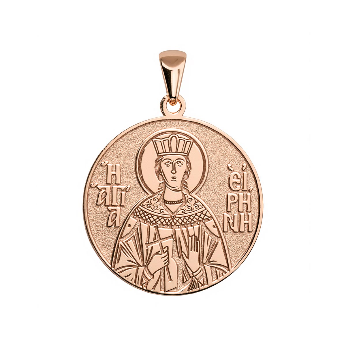 This highly detailed, historically accurate representation of the Greek Orthodox icon of Saint Irene of Thessaloniki is engraved into a round medal in the metal of your choice. Available with or without a chain, this piece makes for the perfect gift for yourself, or for a special someone’s name day! Saint Irene of Thessaloniki was a 4th-century Christian martyr who was martyred for her faith during the reign of Emperor Licinius. She is considered the patron saint of Thessaloniki. Her feast day is celebrated on May 5.