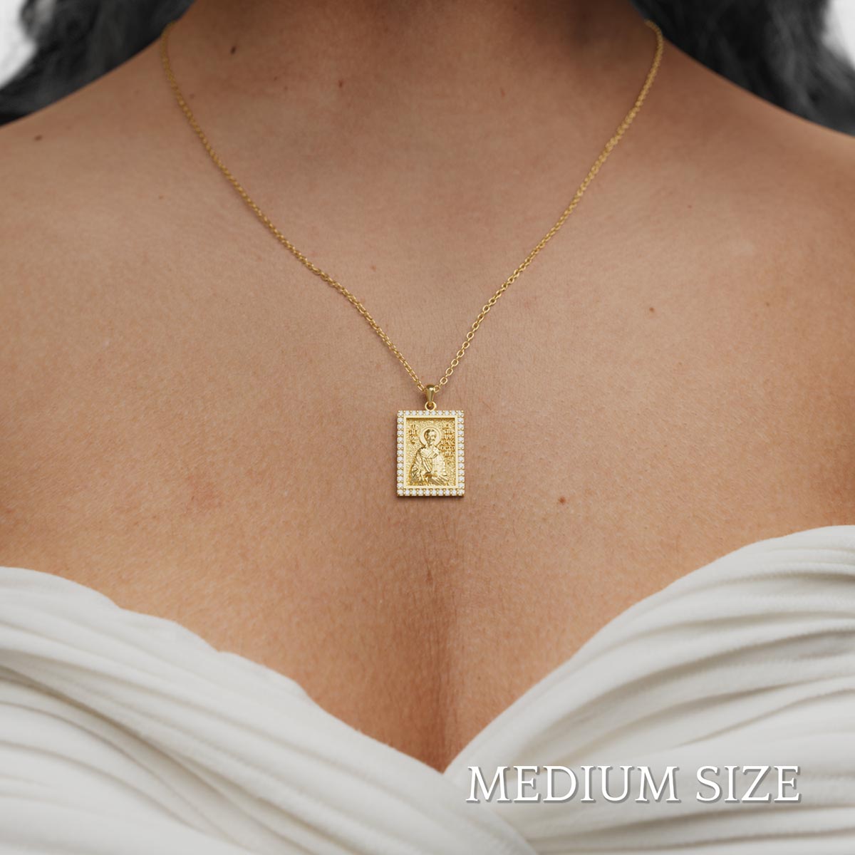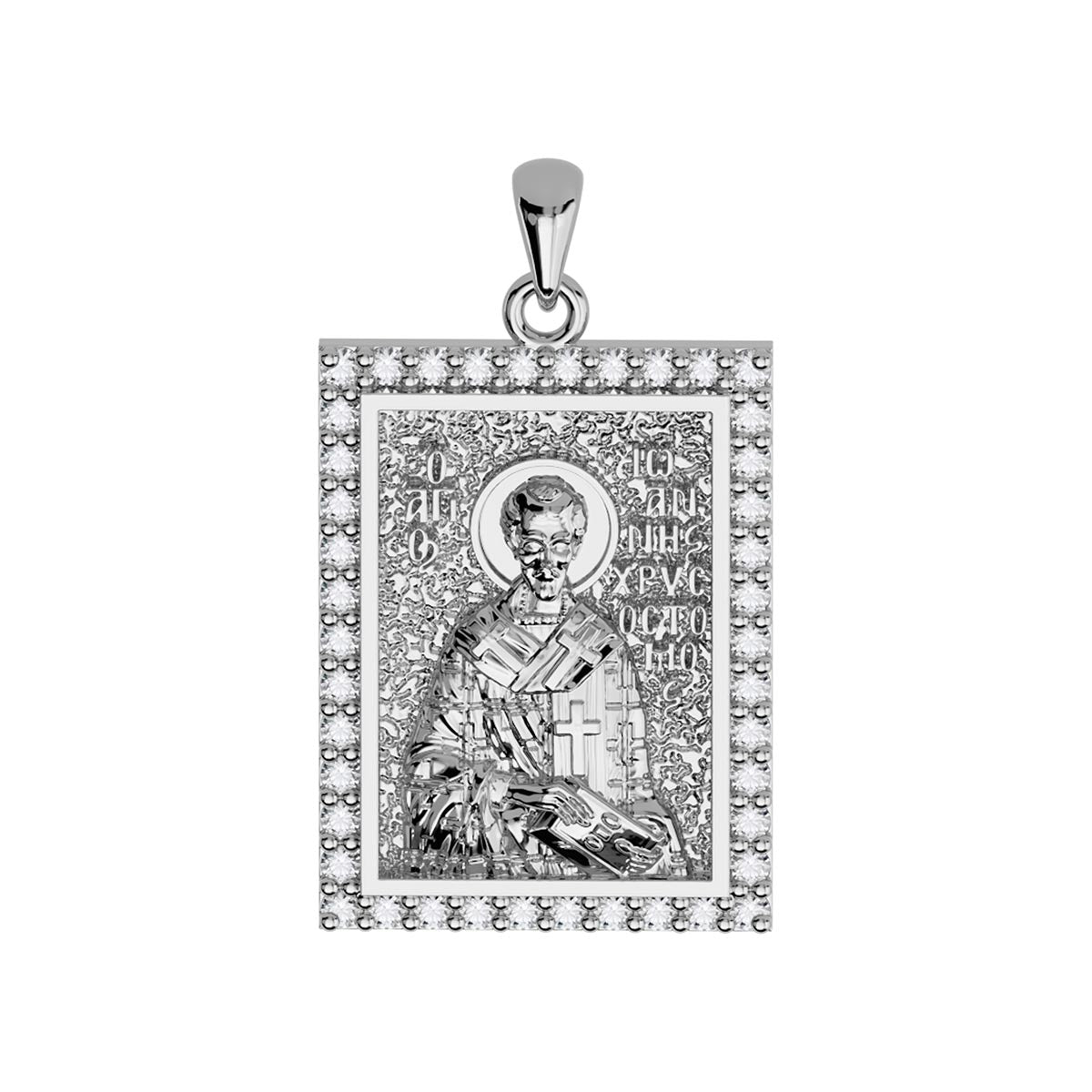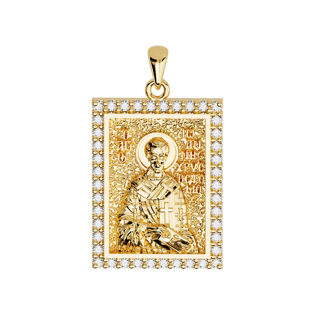 Saint John (Ioannis) Chrysostom Orthodox Icon Sculpted Medium Pavé Tag Medal