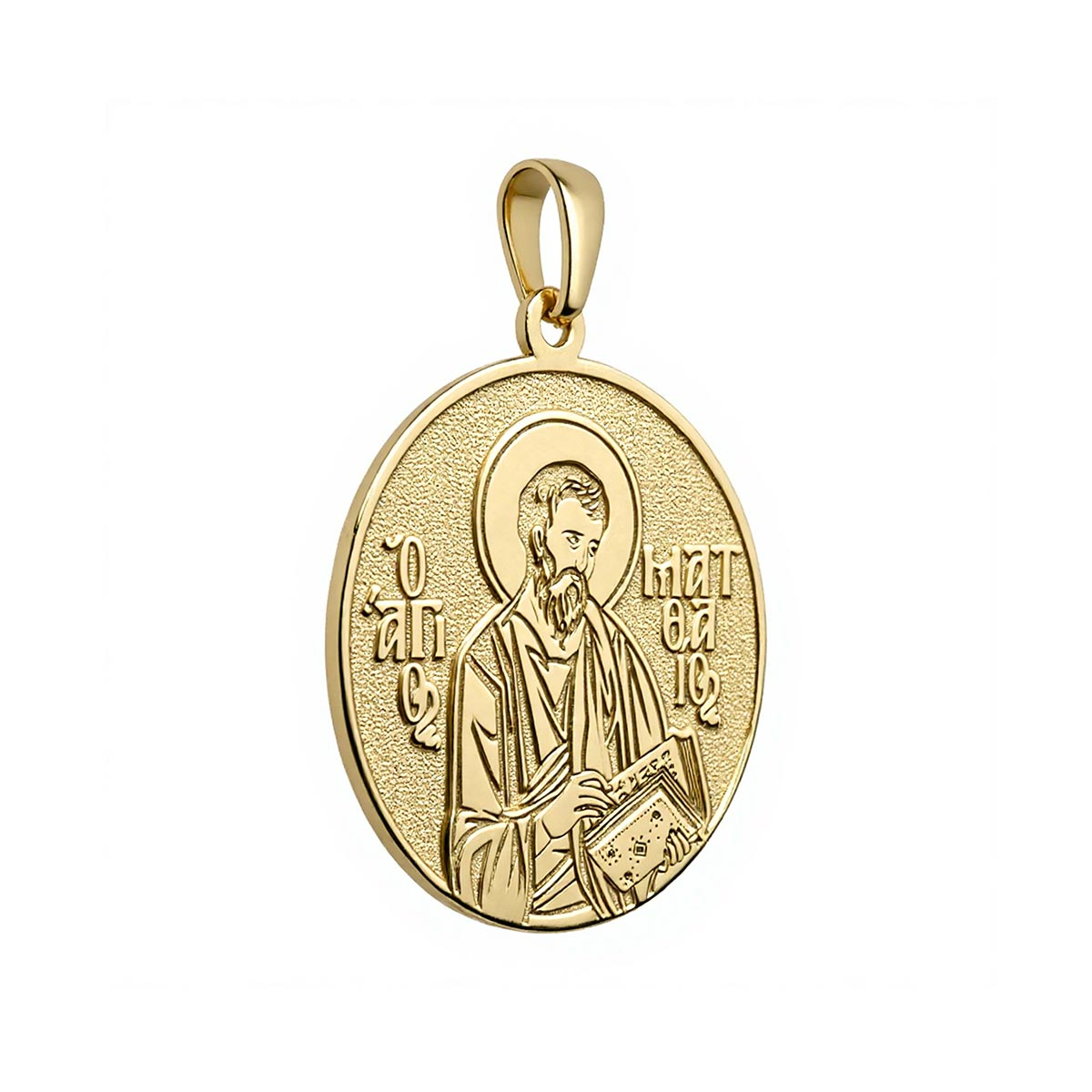 This highly detailed, historically accurate representation of the Greek Orthodox icon of Saint Matthew the Apostle Evangelist is engraved into a round medal in the metal of your choice. Available with or without a chain, this piece makes for the perfect gift for yourself, or for a special someone’s name day! One of the twelve apostles and the author of the Gospel of Matthew, St. Matthew was a tax collector before he became a disciple of Jesus. He is commemorated on November 16.