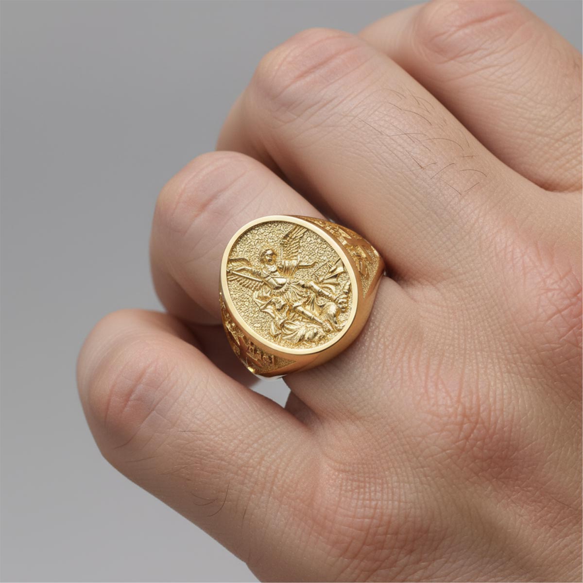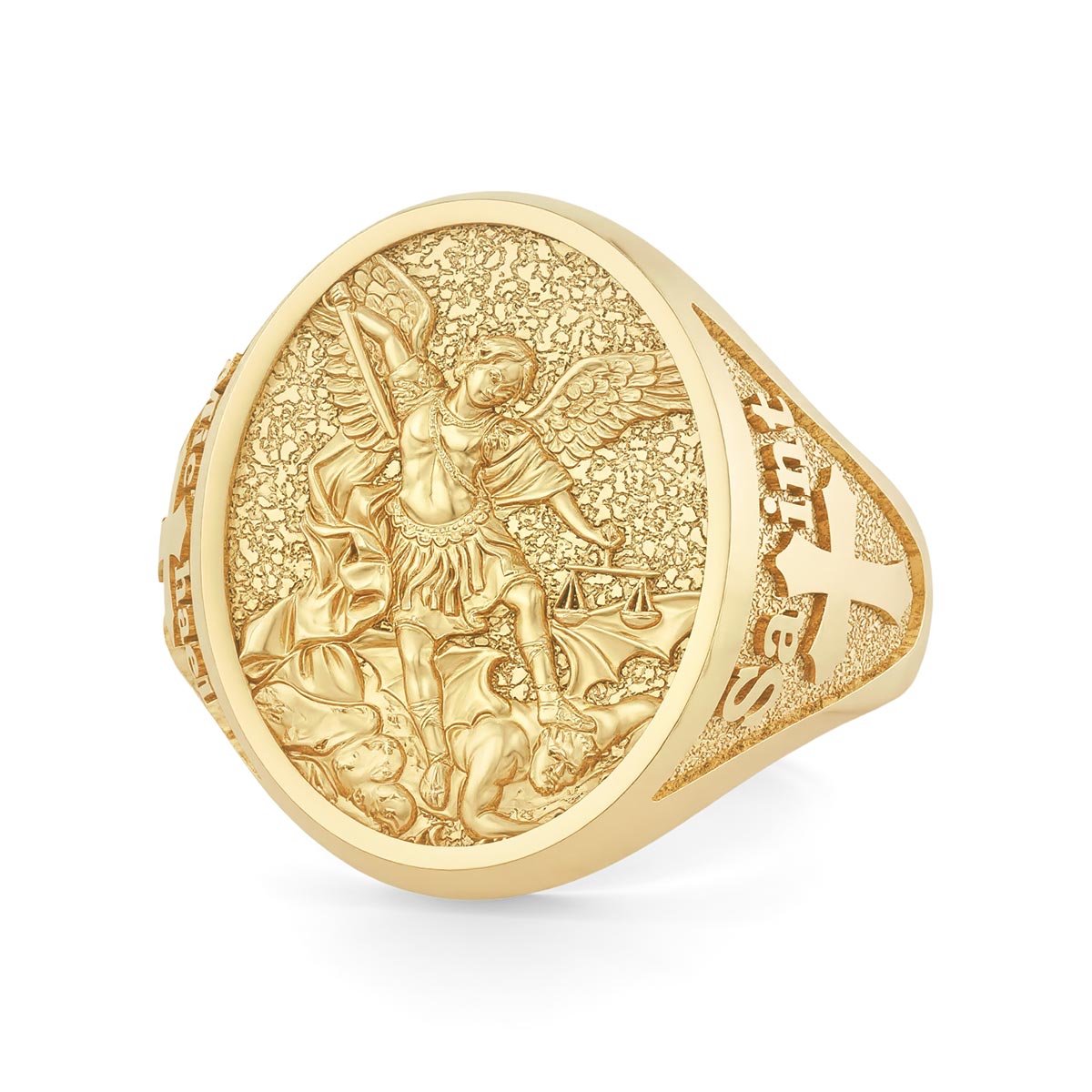 Saint Michael the Archangel Sculpted Signet Ring