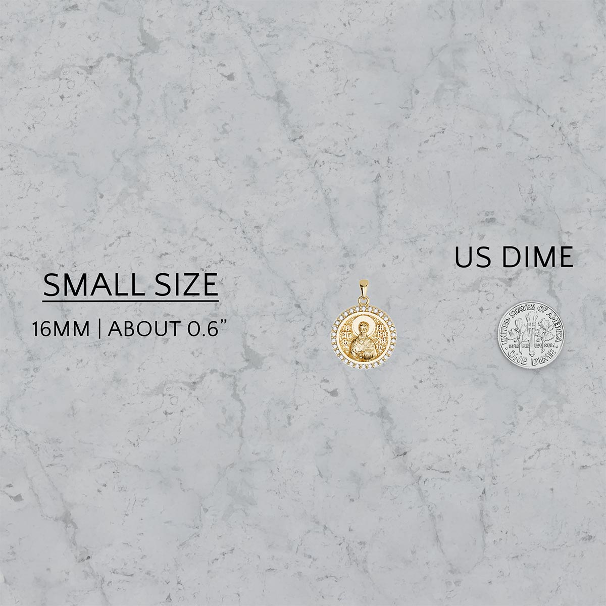 Saint Nicholas Sculpted Small Pavé Round Medal Small (16MM) Round