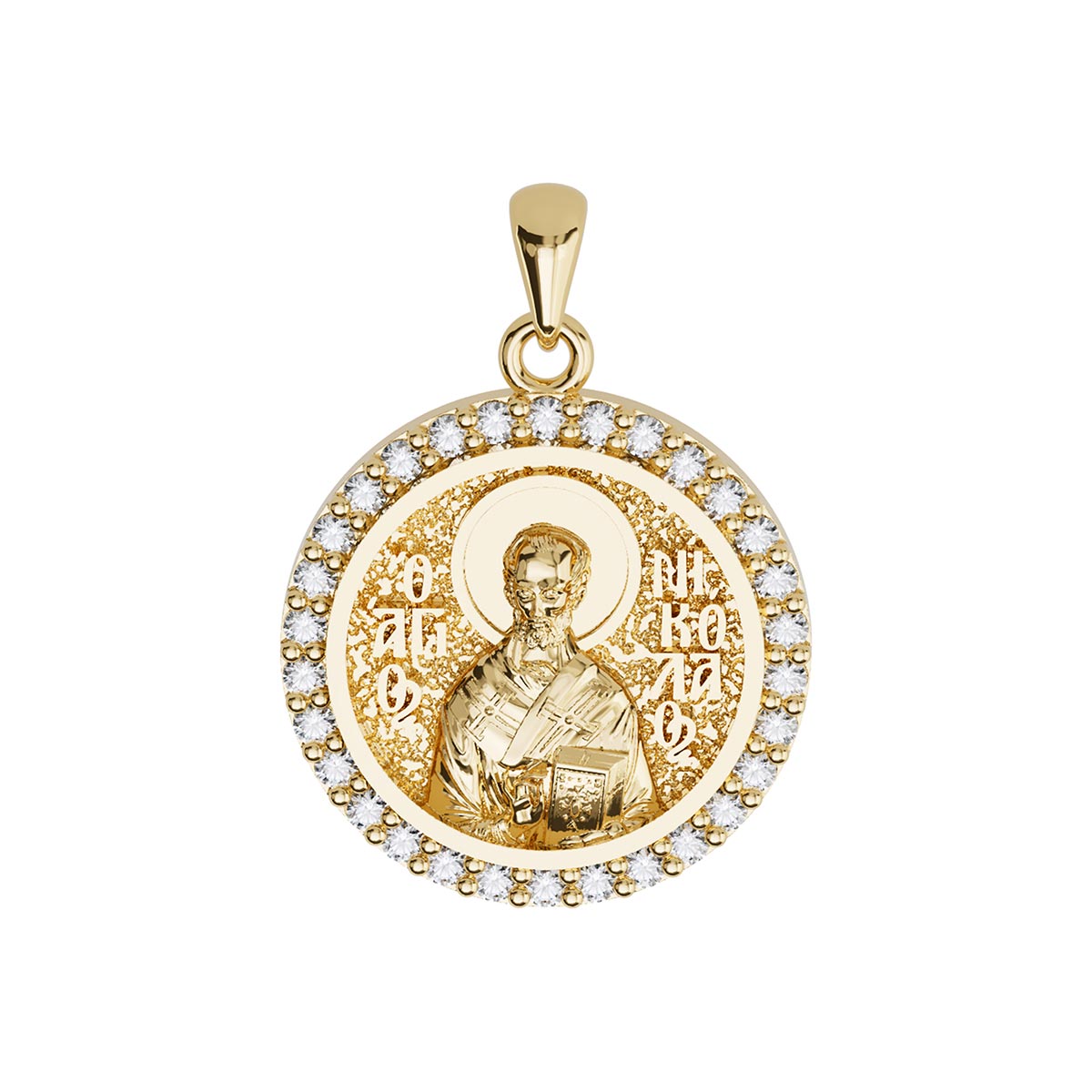Saint Nicholas Orthodox Icon Sculpted Medium Pavé Round Medal Medium (20MM) Round