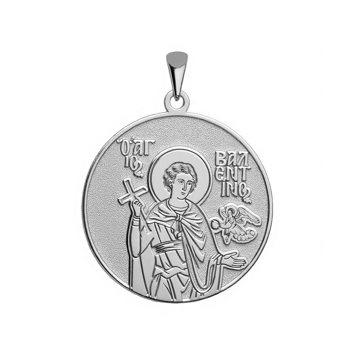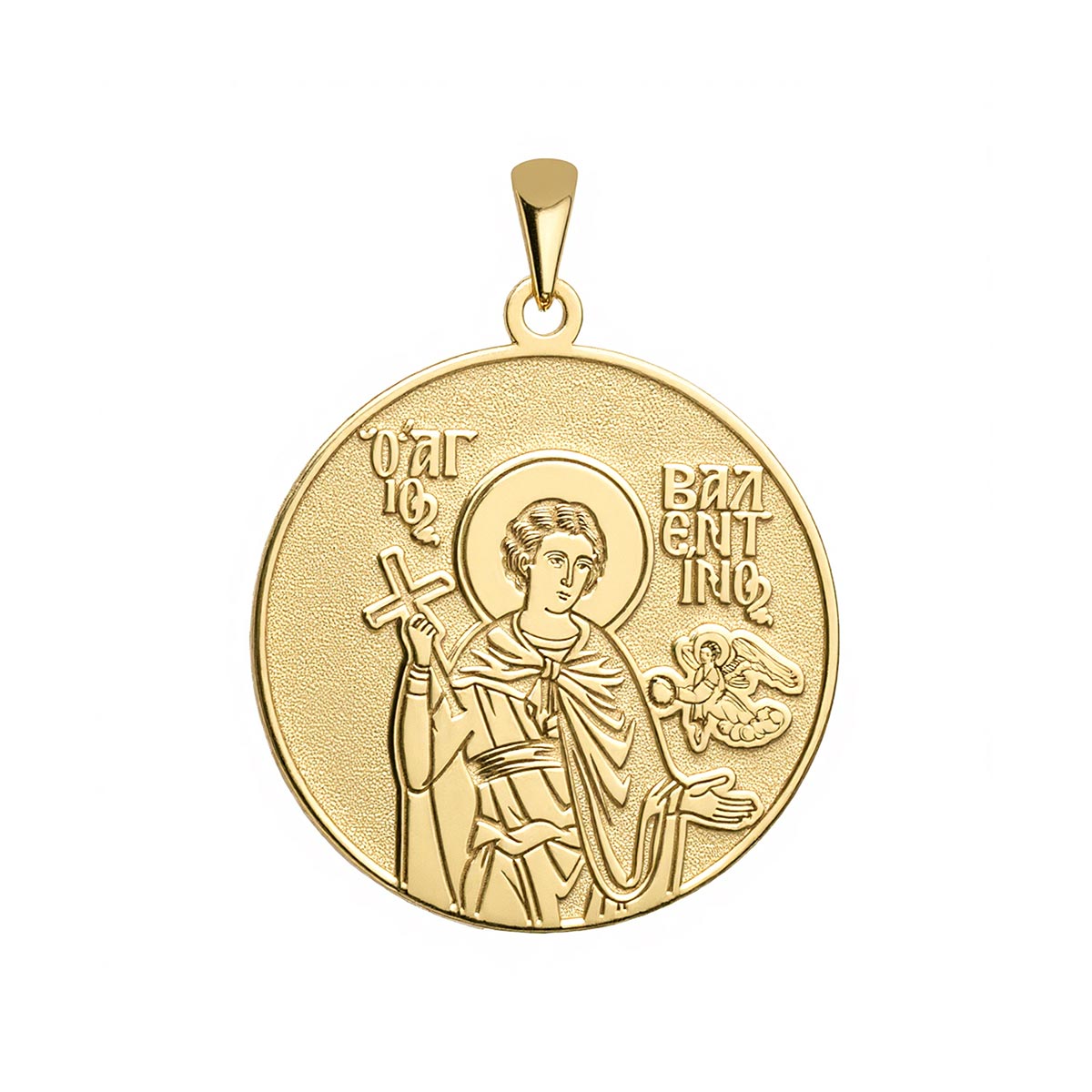 This highly detailed, historically accurate representation of the Greek Orthodox icon of Saint Valentine (Valentinos) of Magnesia is engraved into a round medal in the metal of your choice. Available with or without a chain, this piece makes for the perfect gift for yourself, or for a special someone’s name day! Saint Valentine (Valentinos) of Magnesia was a Christian martyr who was executed for his faith in the third century. He is best known for his association with the holiday of Valentine's Day.