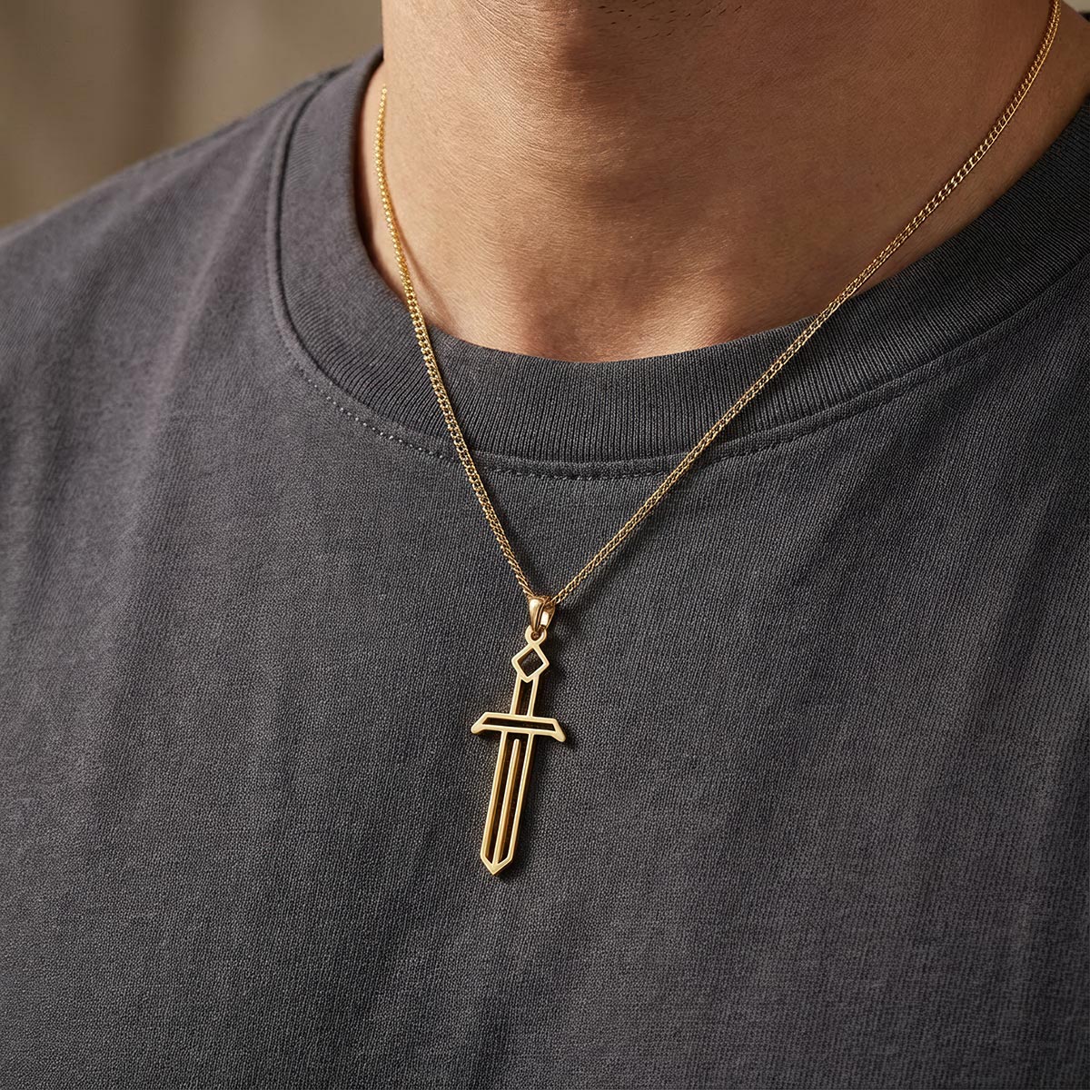 Embrace the spirit of strength and determination with our Vertical Flat Sword Pendant. Crafted in solid gold or sterling silver, this pendant features a streamlined sword design, symbolizing bravery and resilience. Its minimalist yet impactful design makes it a versatile accessory for any occasion. Wear it as a reminder of your inner strength or gift it to someone special; it's a statement piece that embodies courage and tenacity, beautifully crafted.