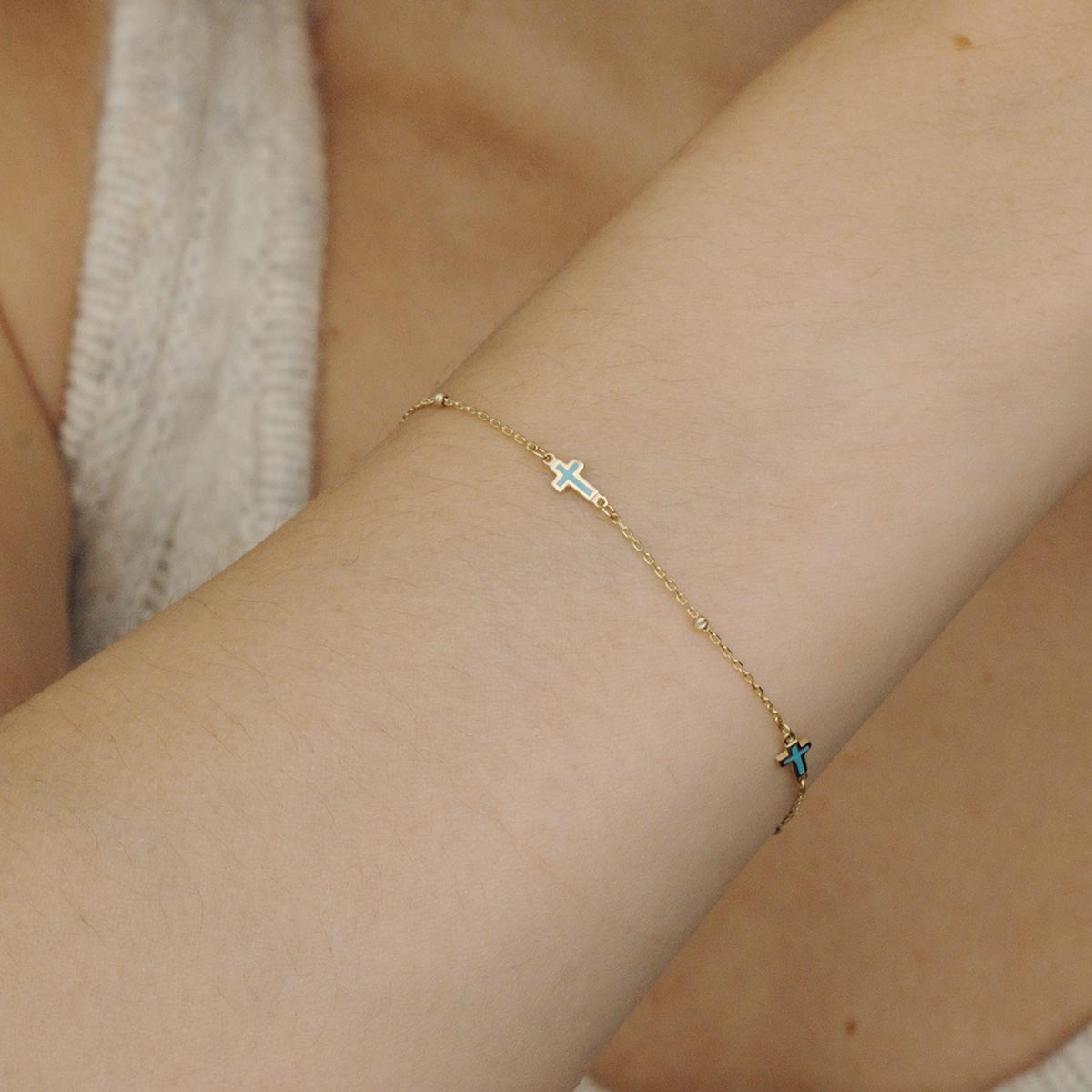 Diamond-Cut Two-Tone Greek Key Link Bracelet
