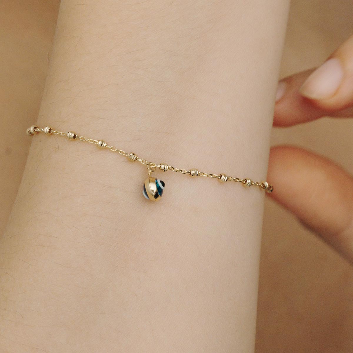 Diamond-Cut Beaded Dangling Evil Eye Bracelet