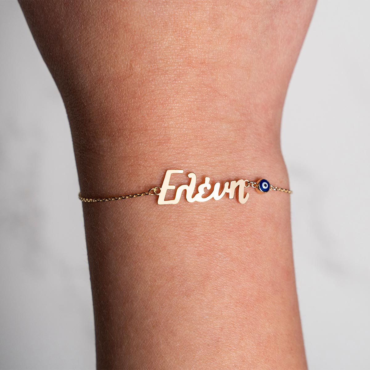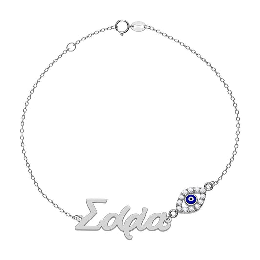 Greek Personalized Name Bracelet With Round Evil Eye Charm