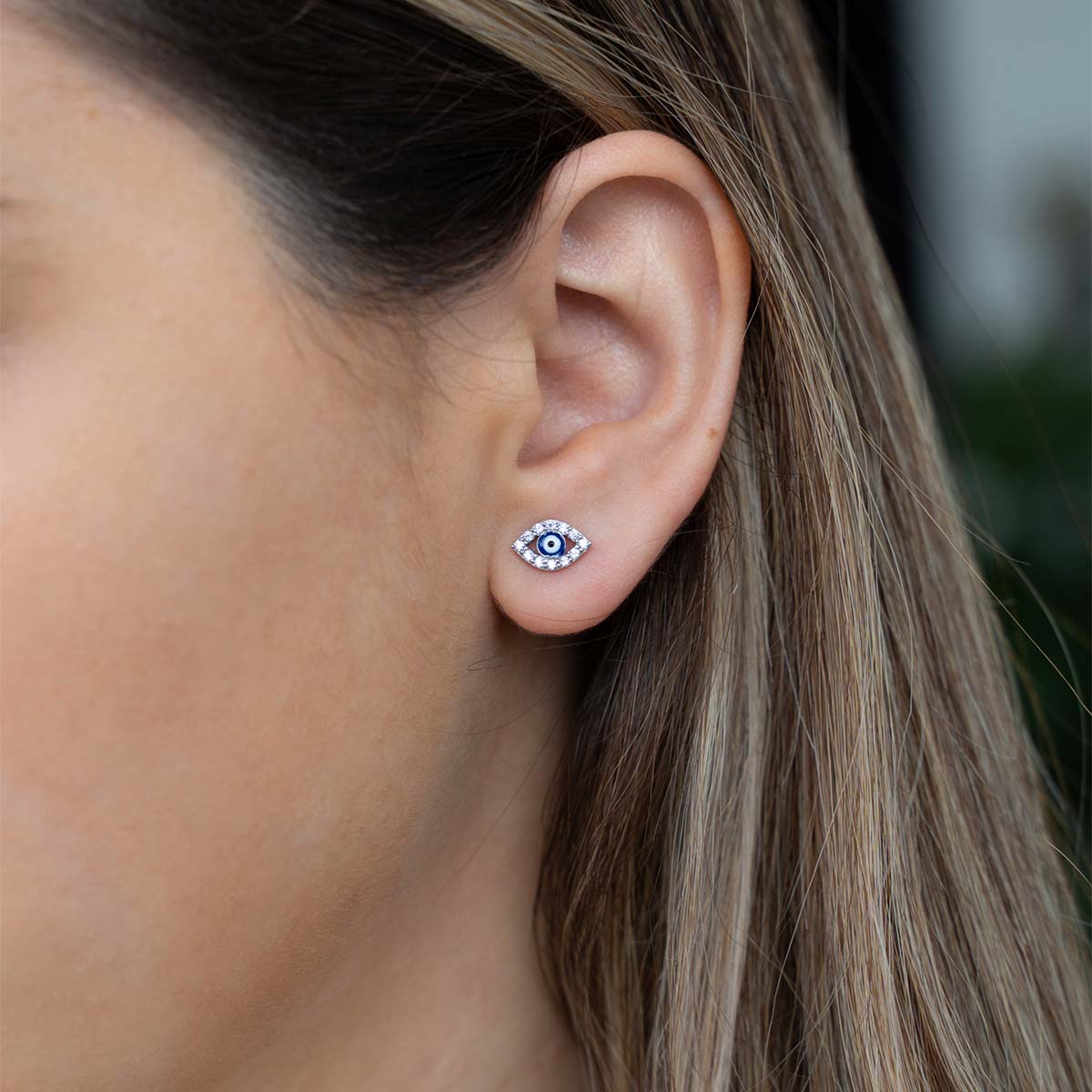 Marquise Pavé Evil Eye Enamel Stud Earrings