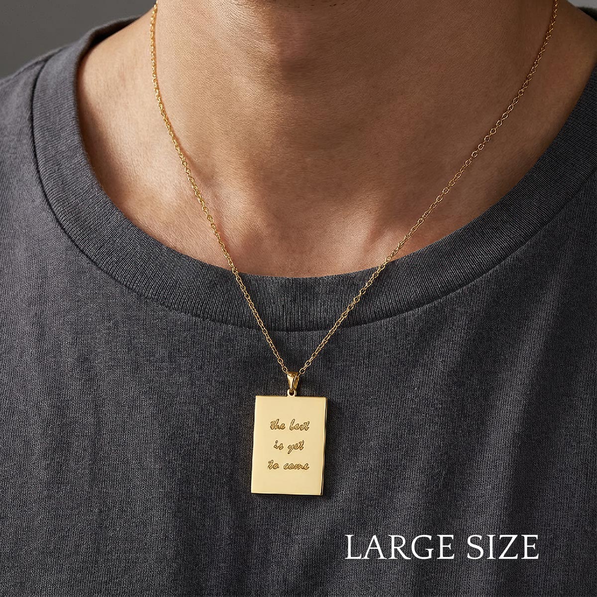 Narrow Horizontal Bar Necklace with Engraving and Cross Charm