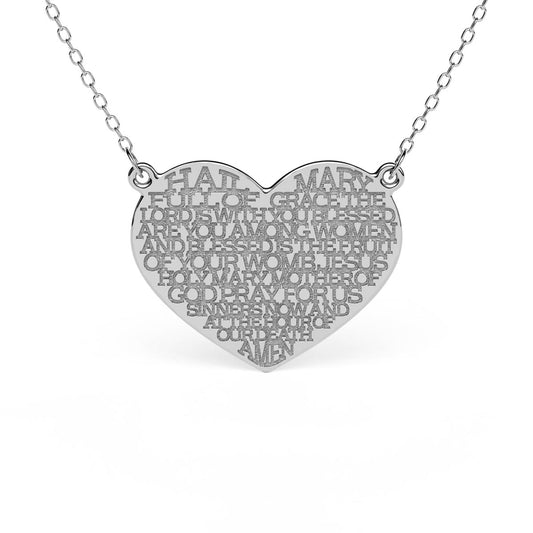Engraved Modern Hail Mary Heart Necklace