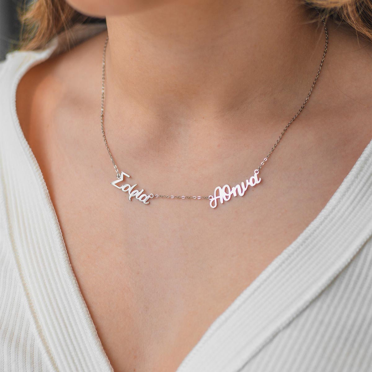 Greek Personalized 2 Name Necklace