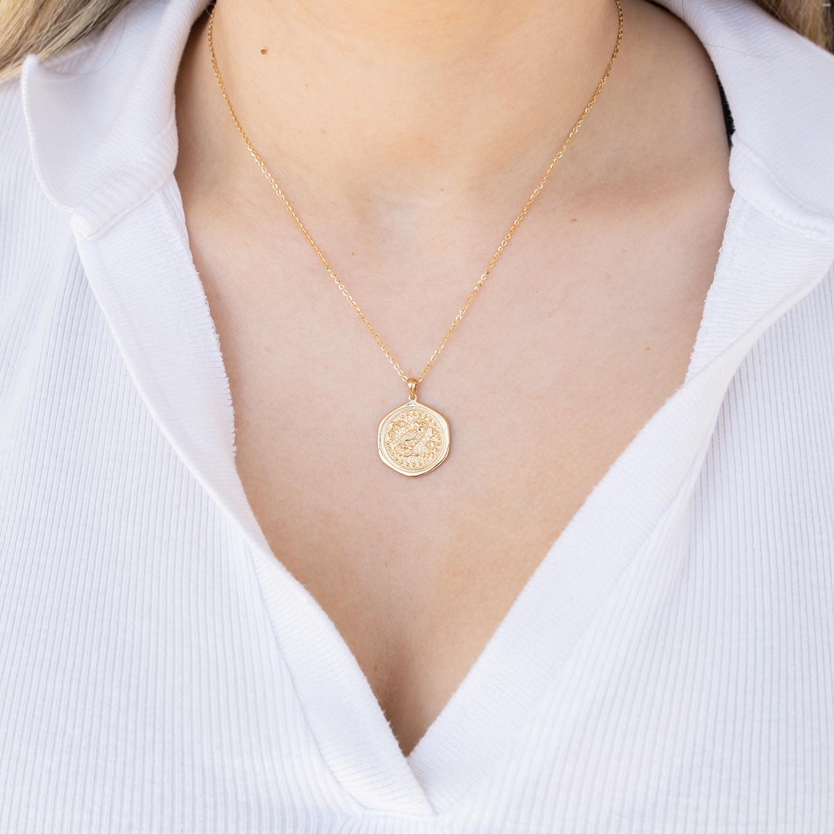 Owl of Athena Textured Coin Necklace