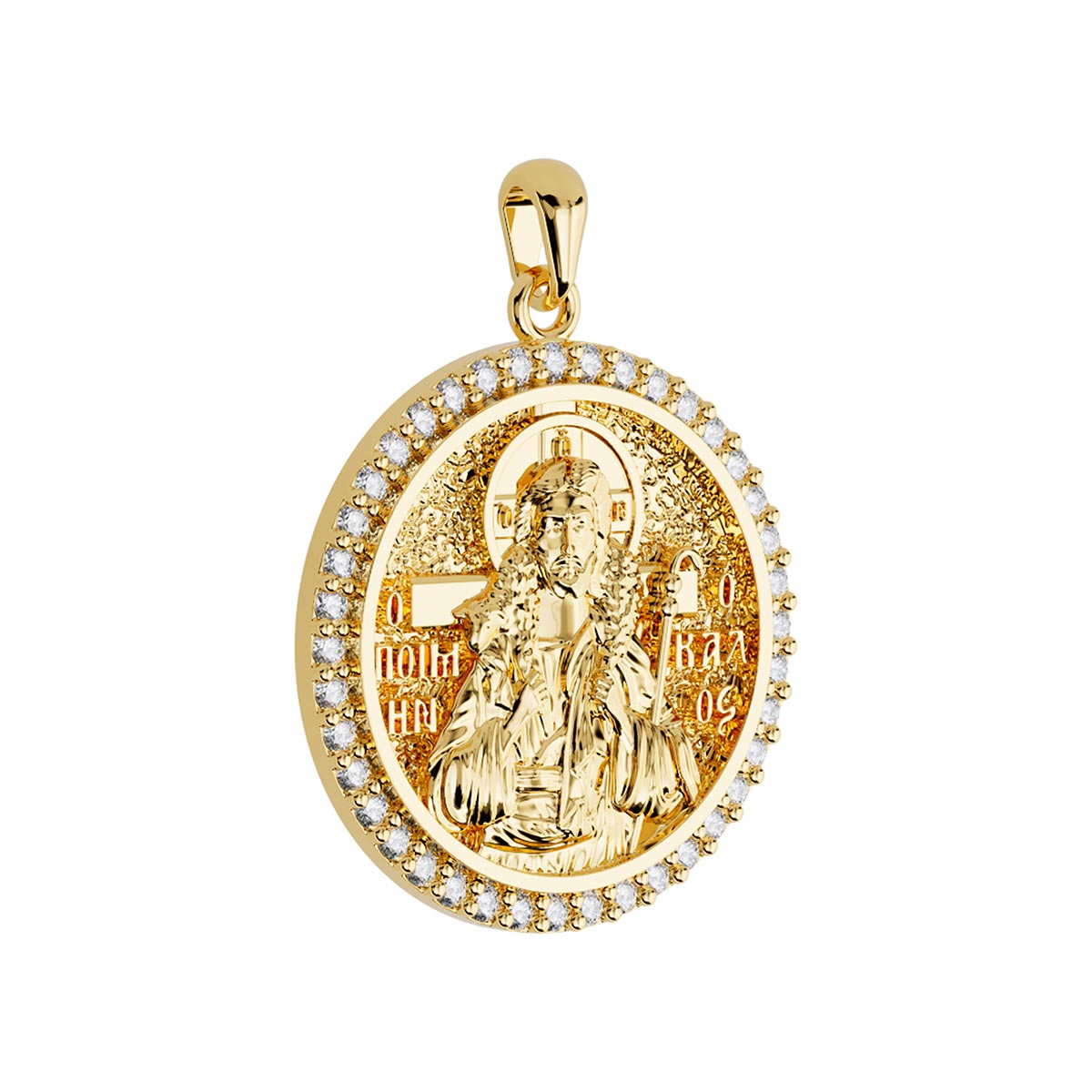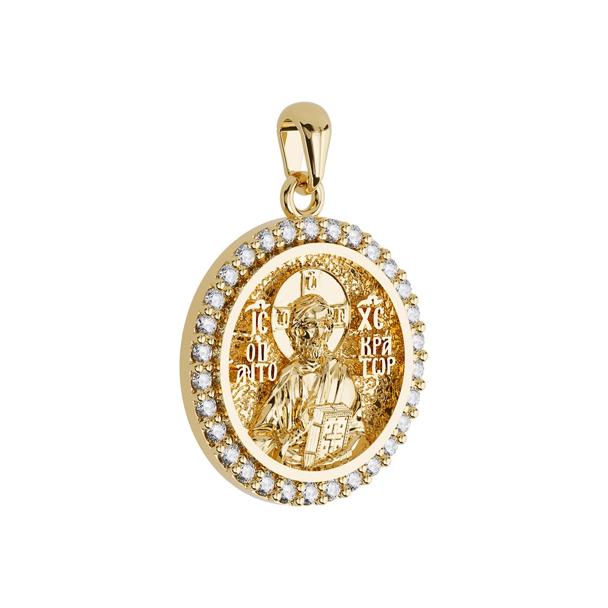 Christ Pantocrator Orthodox Icon Sculpted Medium Pavé Round Medal
