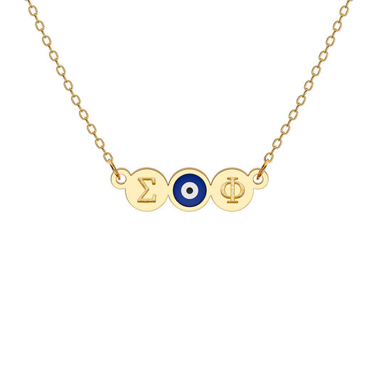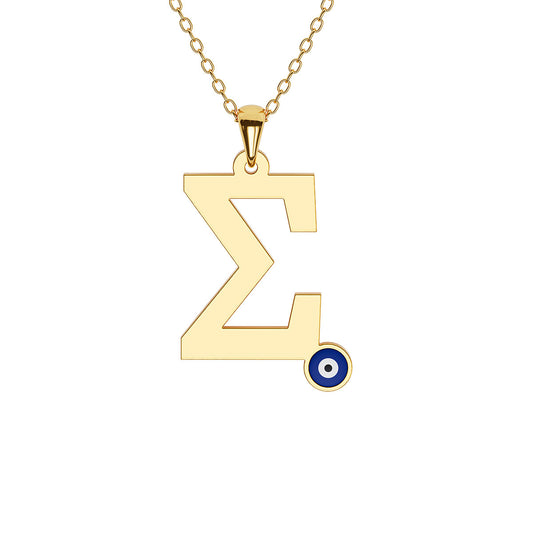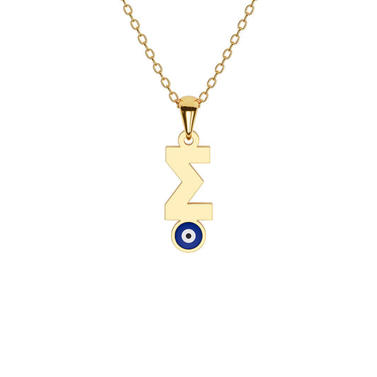 Greek Personalized Initial Necklace With Round Evil Eye Charm