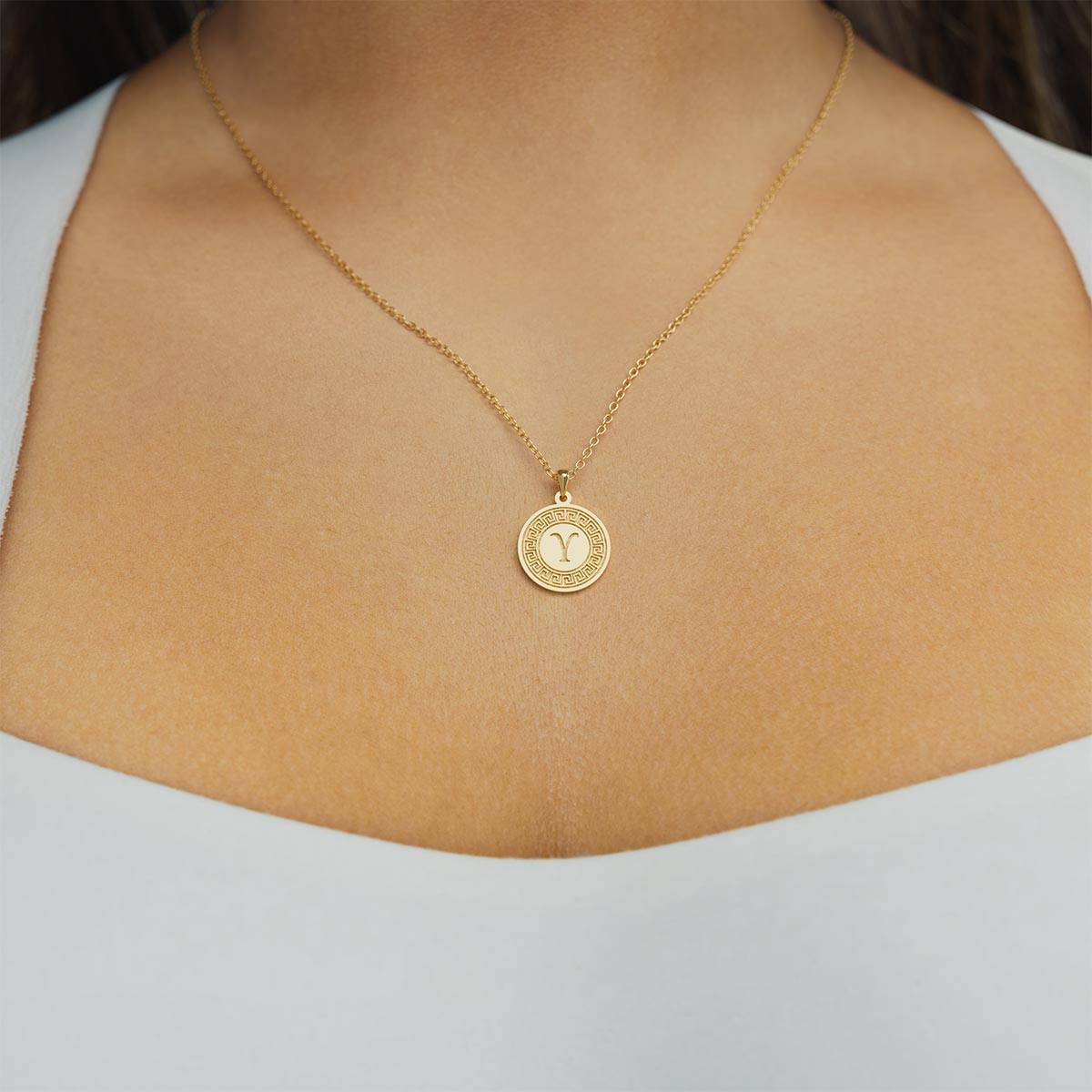 Greek Personalized Initial Necklace With Round Evil Eye Charm