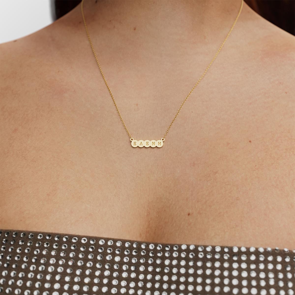 Personalized Dotted Disc Necklace with 4 Greek Name Engravings