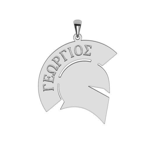Men's Spartan Helmet Necklace with Greek Name Engraving