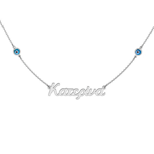 Greek Personalized Name Necklace With Evil Eye Charms